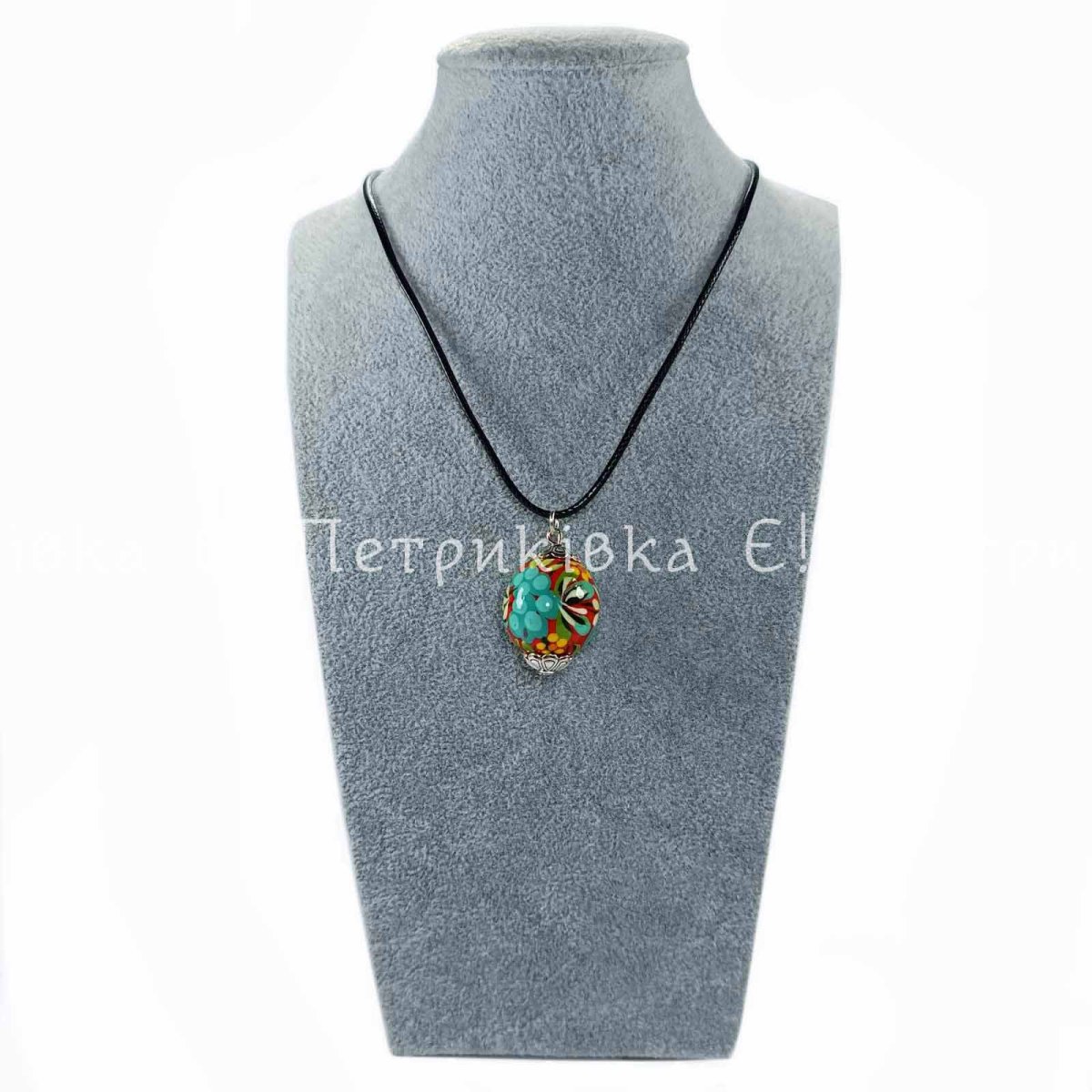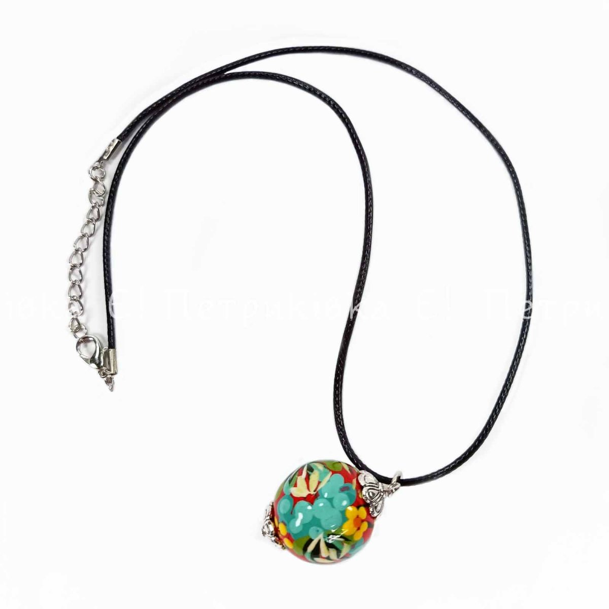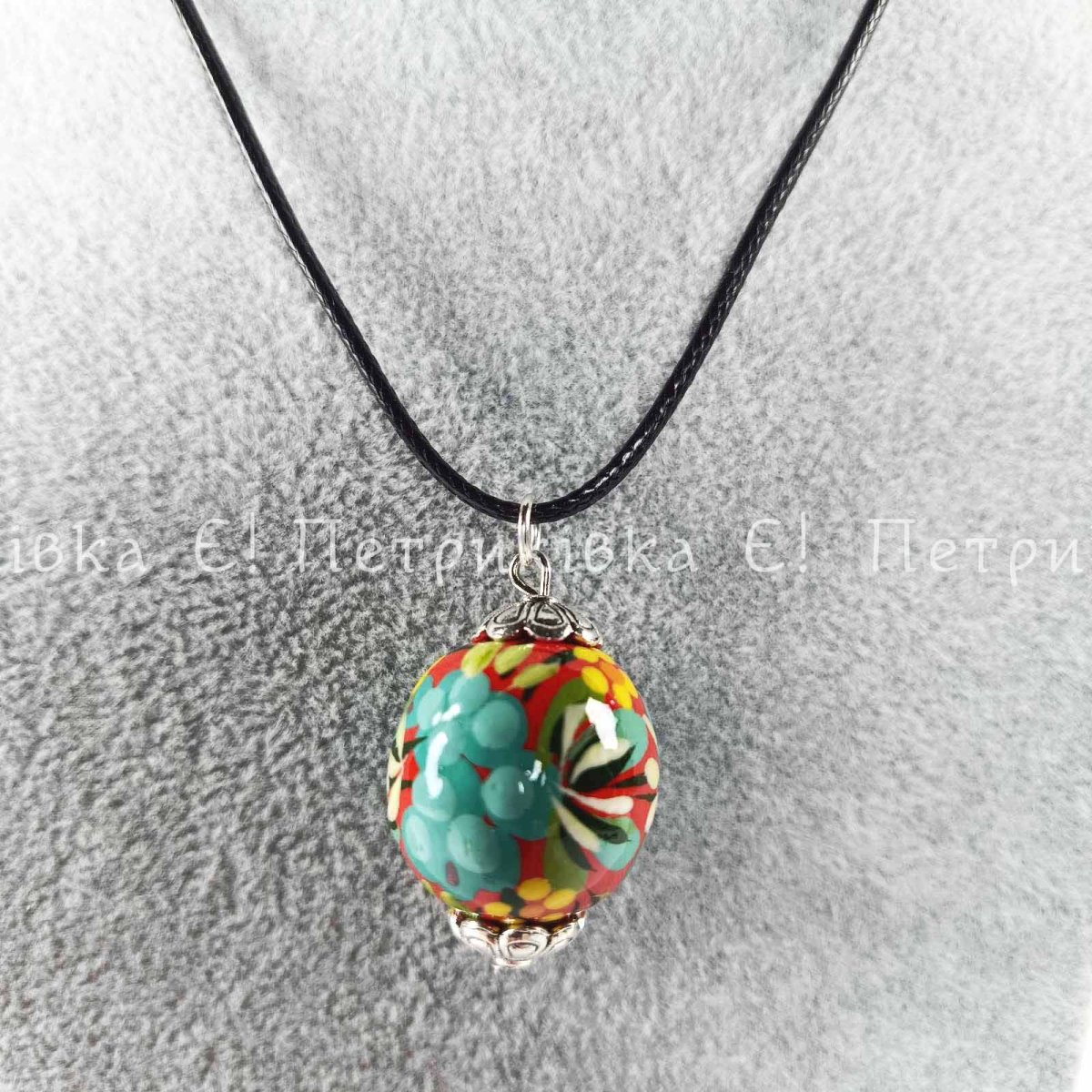 Кулон-намистина з Петриківським розписом "Бірюзова калина" на червоному