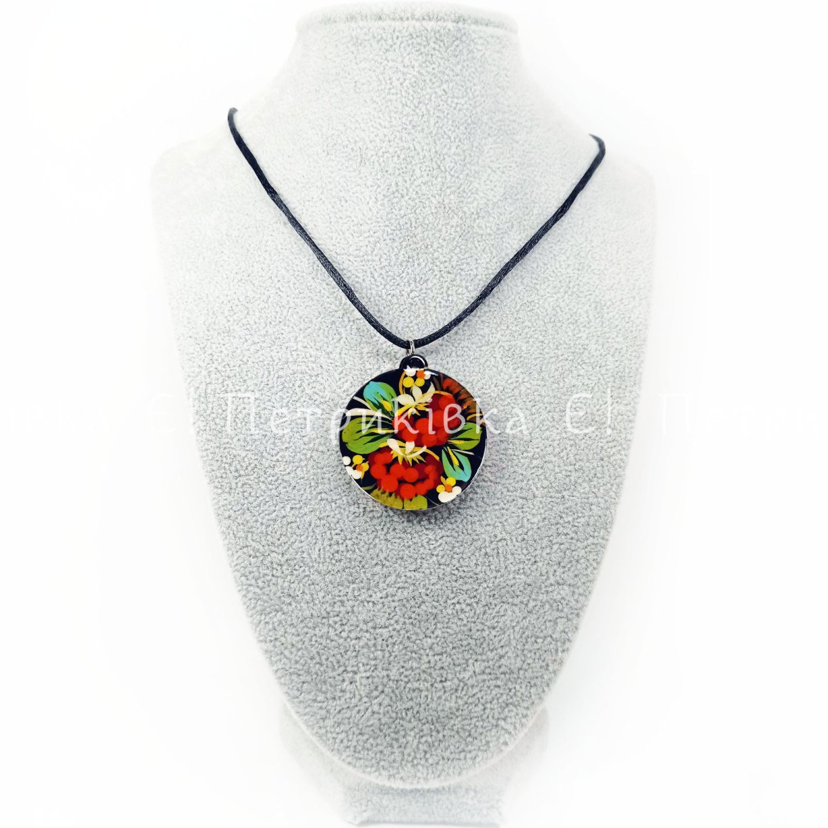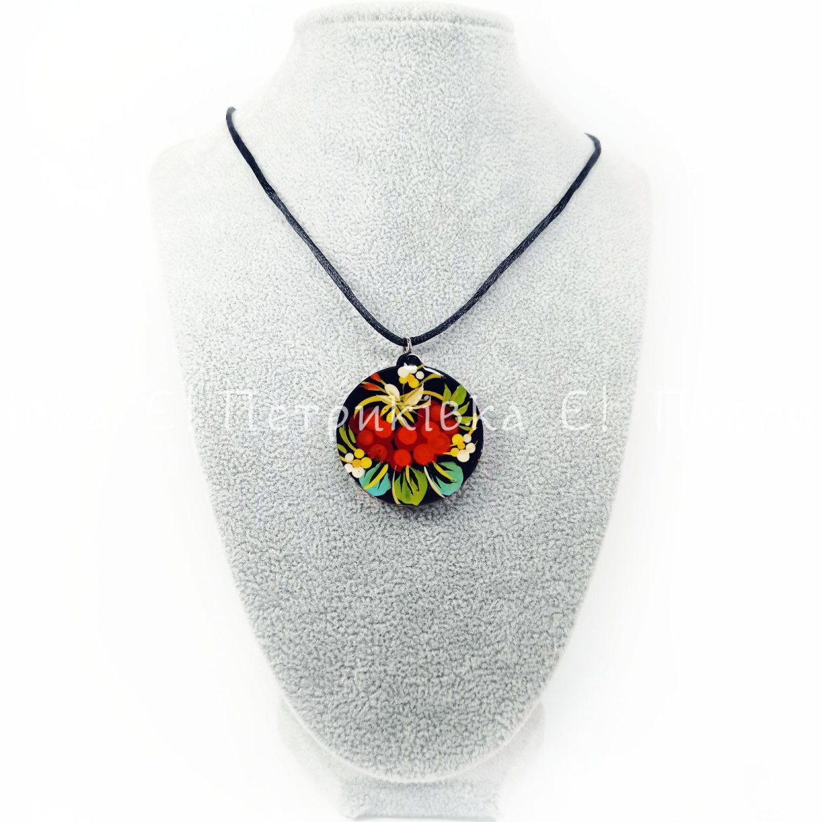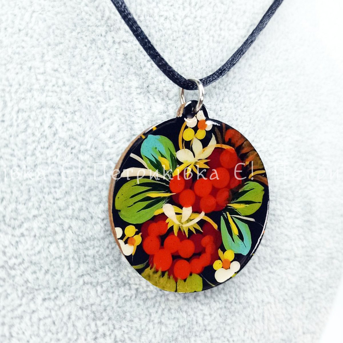 Кулон круглий з Петриківським розписом "Калина". Двосторонній розпис