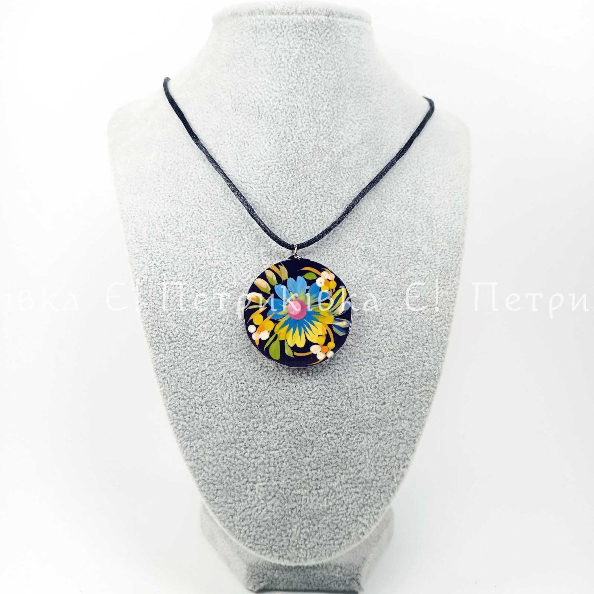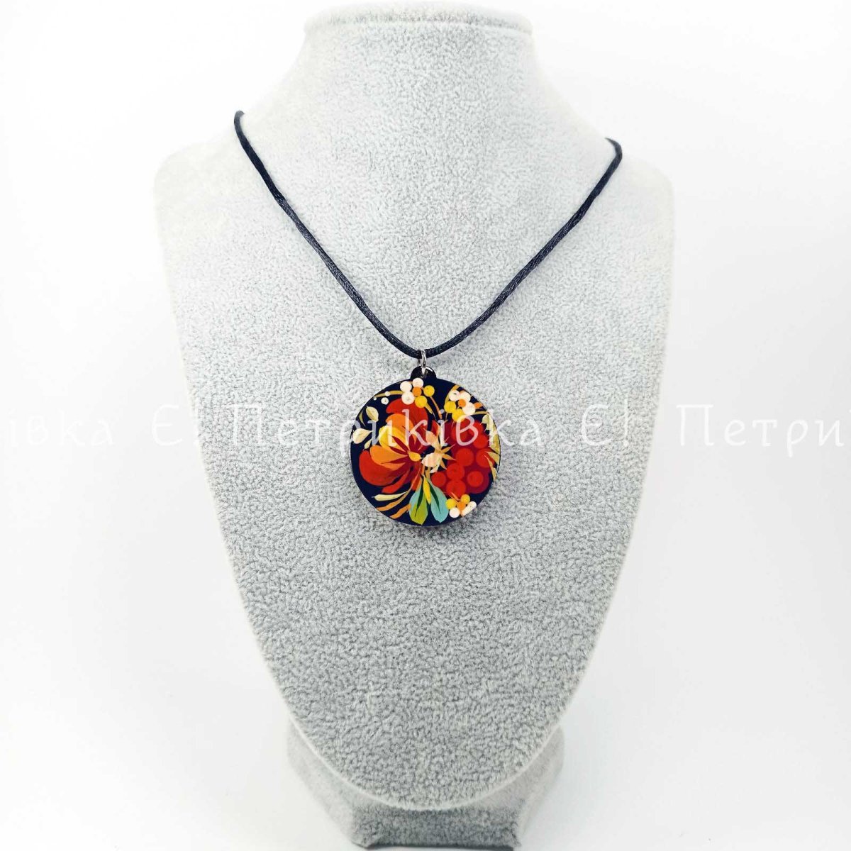 Кулон круглий з Петриківським розписом "Украінська квітка". Двосторонній розпис