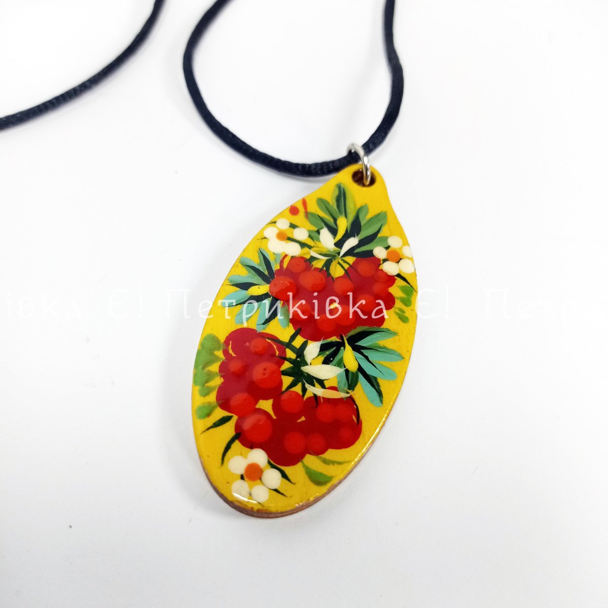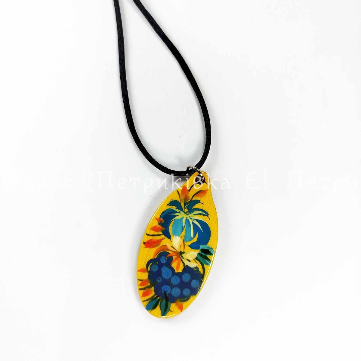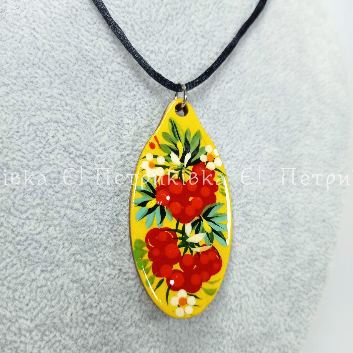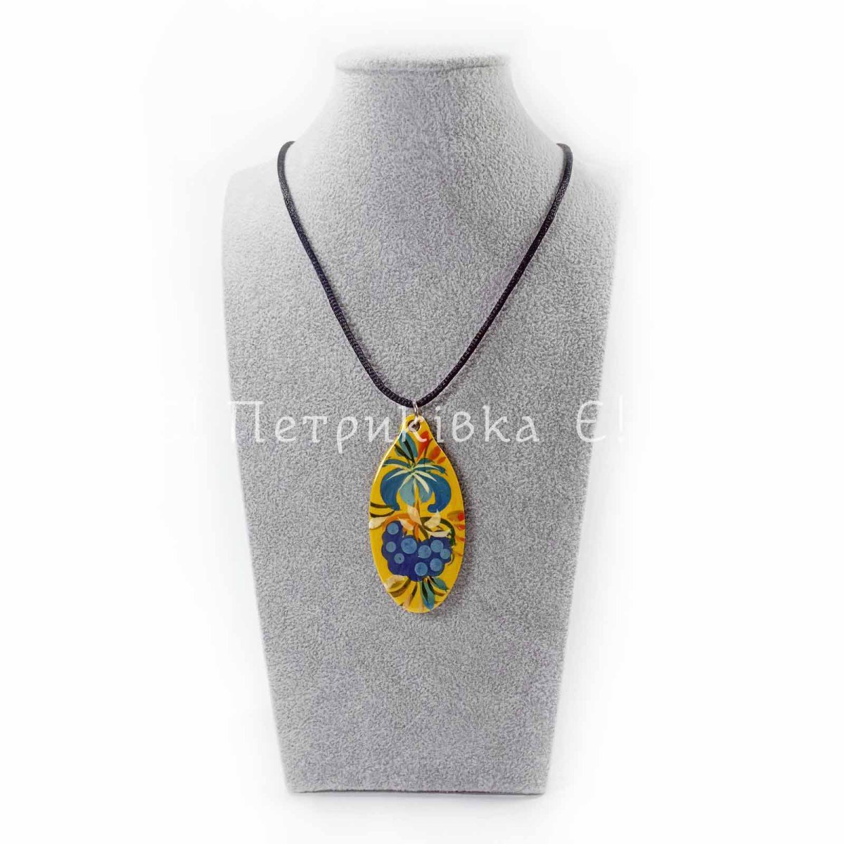 Кулон овальний з Петриківським розписом "Жовтий". Двосторонній розпис