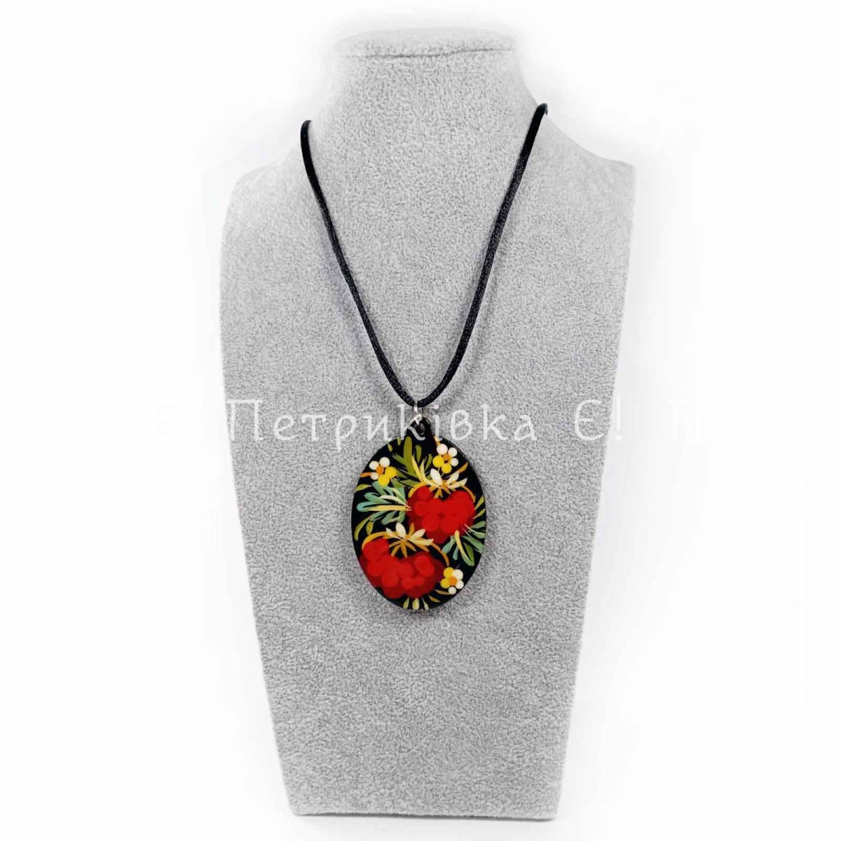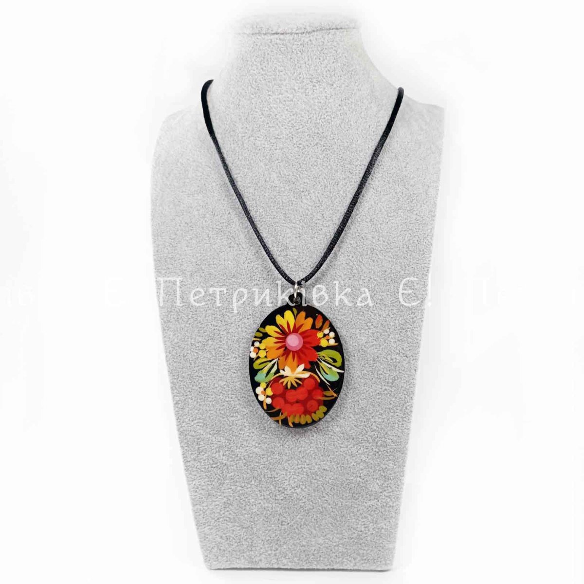 Кулон овальний з Петриківським розписом "Яскравий". Двосторонній розпис