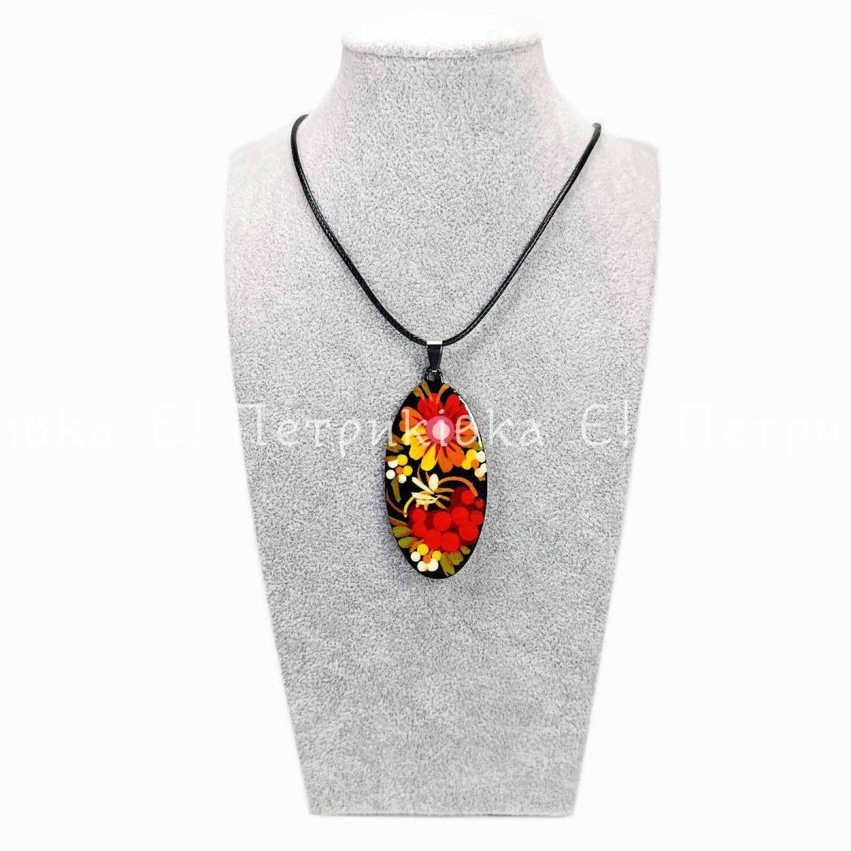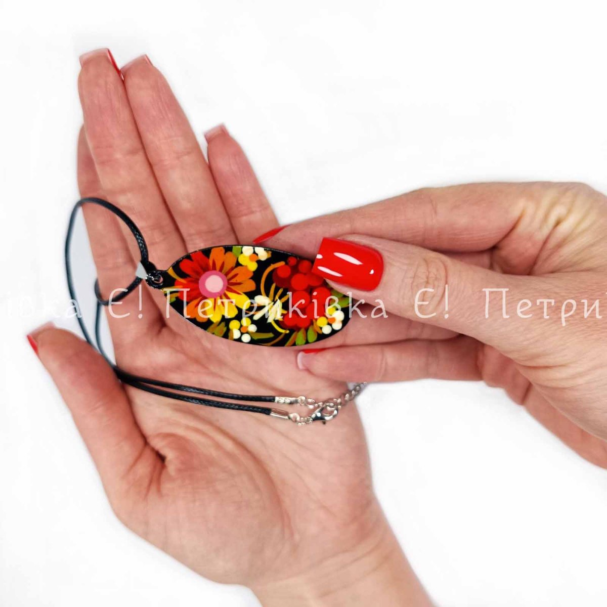 Кулон овальний з Петриківським розписом "Мальва" двосторонній нова фурнітура