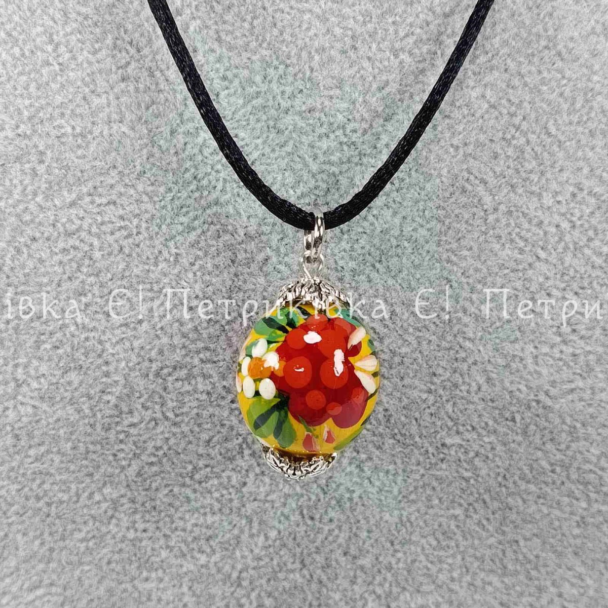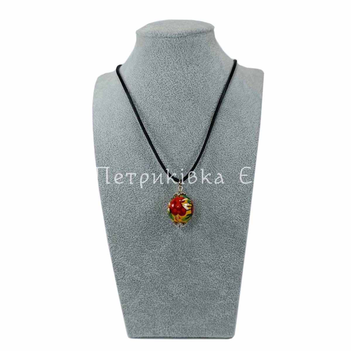 Кулон з Петриківським розписом. Намистина з бука, якісна фурнітура. Розпис виконано гуашшю. Два шари глянцевого лаку