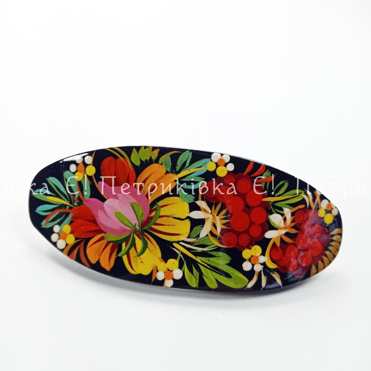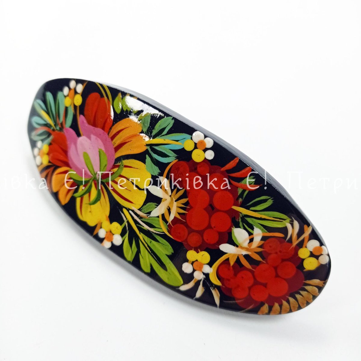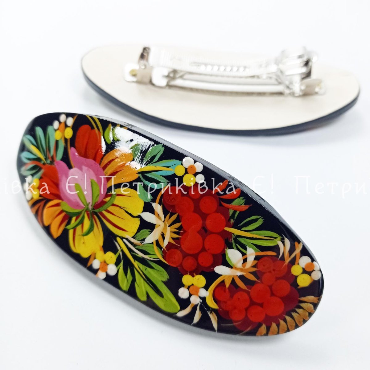 Заколка-автомат з Петриківським розписом "Калина з квіточкою"