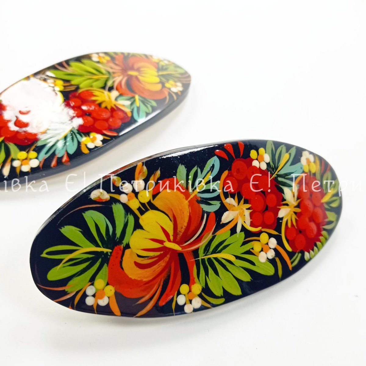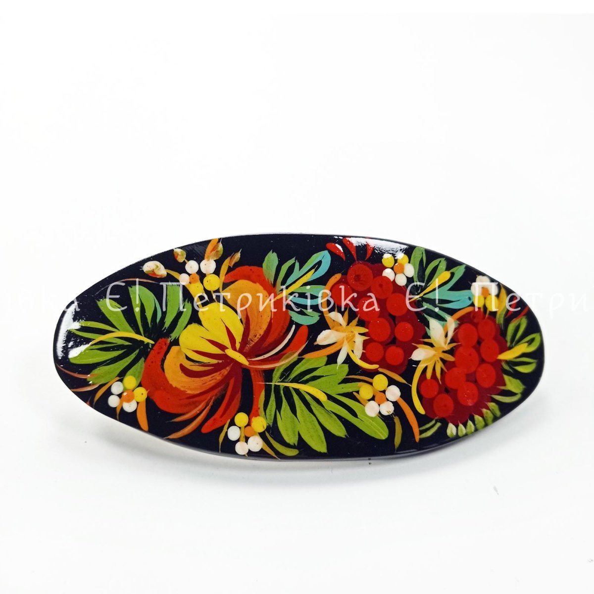 Петриківський розпис виконано гуашшю, два шари глянцевого лаку