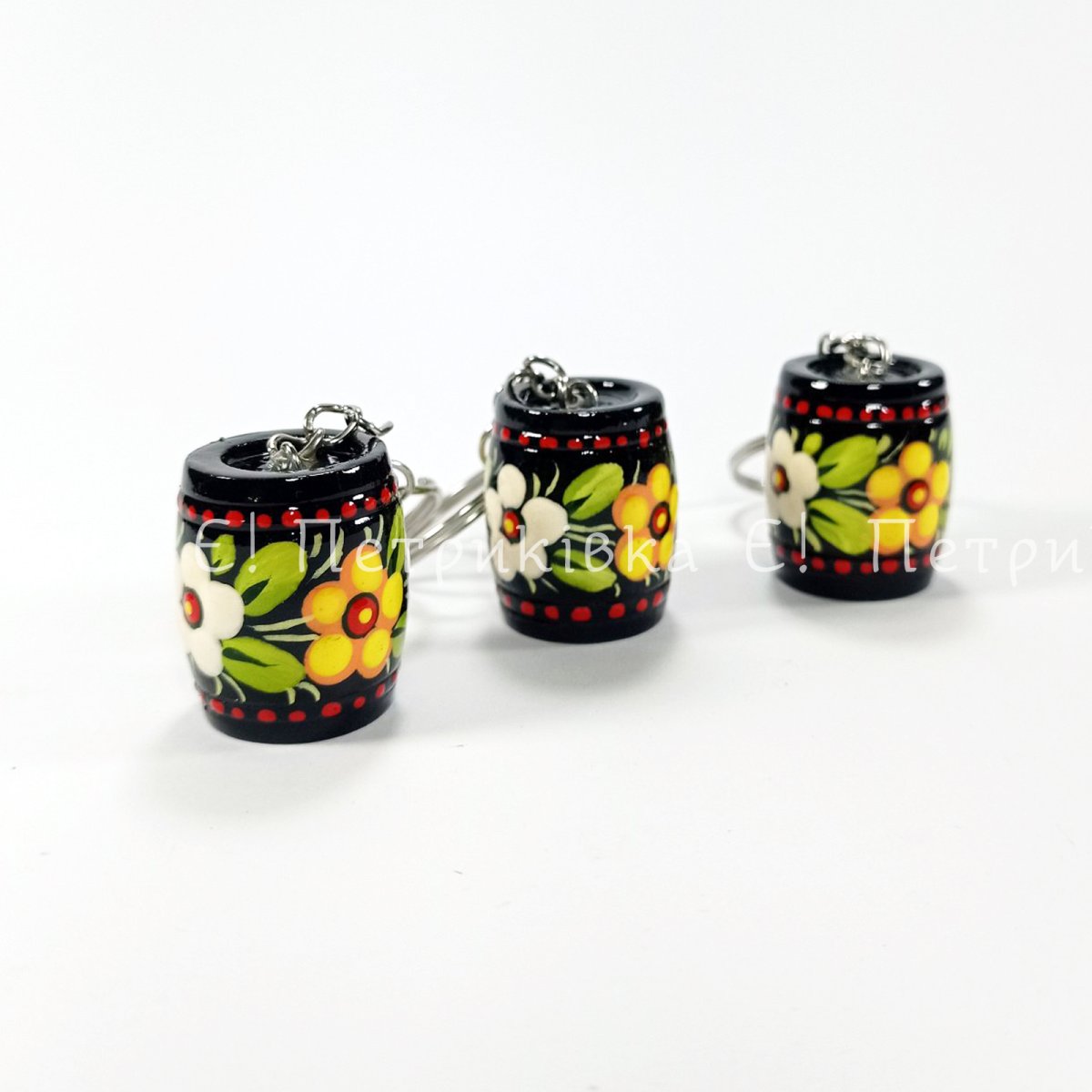 Брелок з деревини ясеня, якысна фурнітура. Висота - 2,5 см. Розпис - гуаш, два шари глянцевого лаку