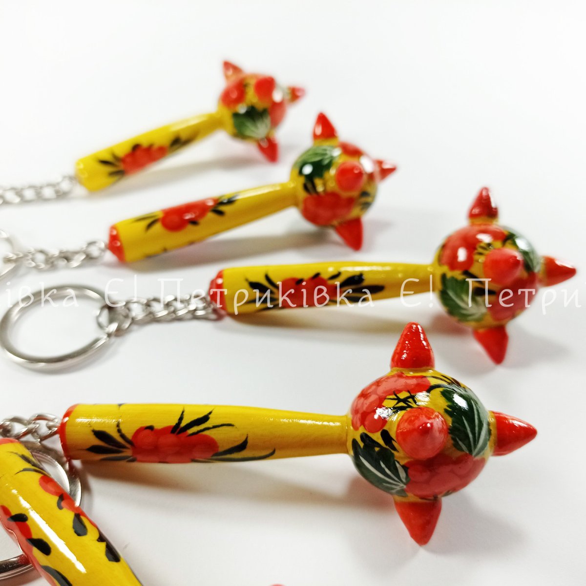 Брелок петриківський розпис "Булава зі смородиною та калиною" по жовтому