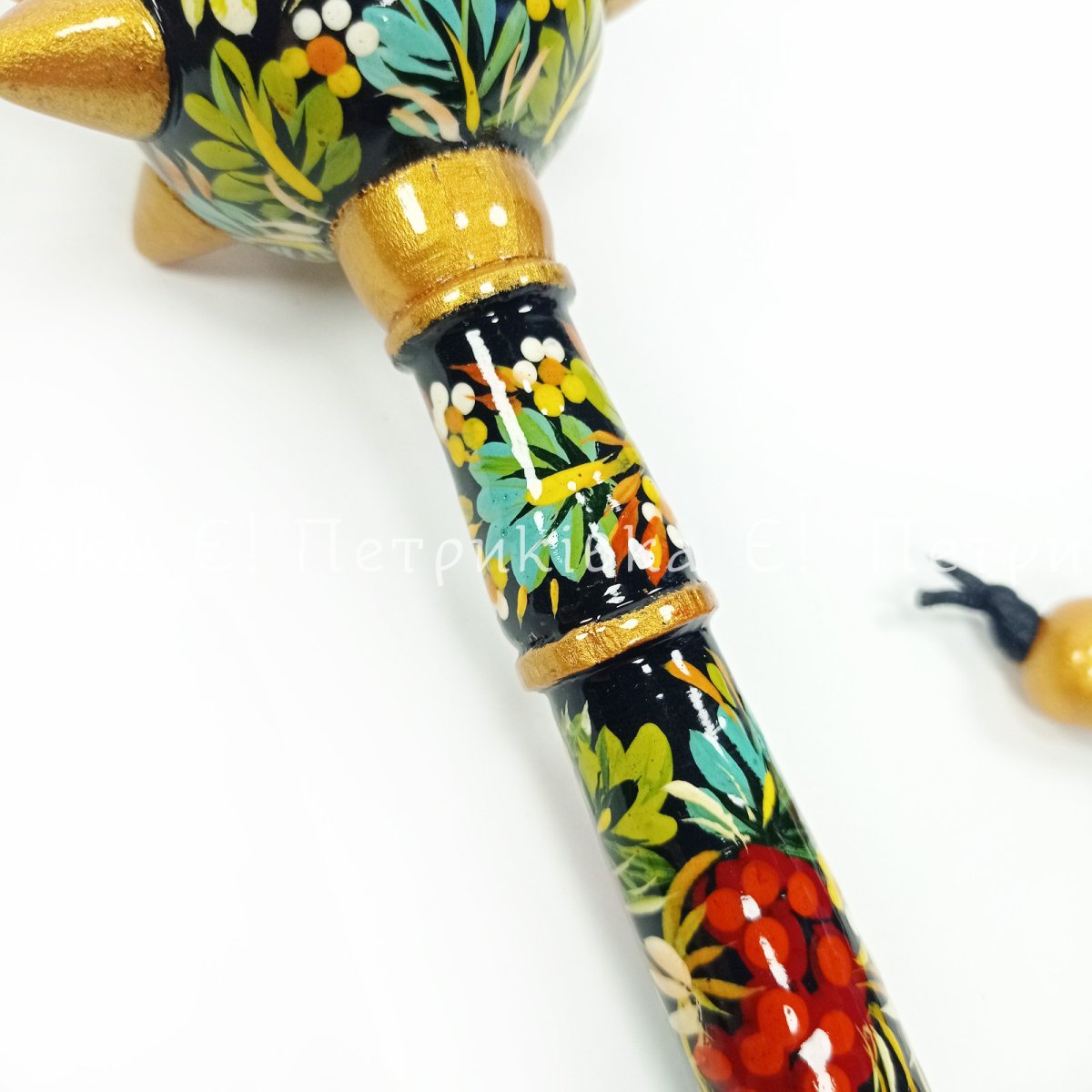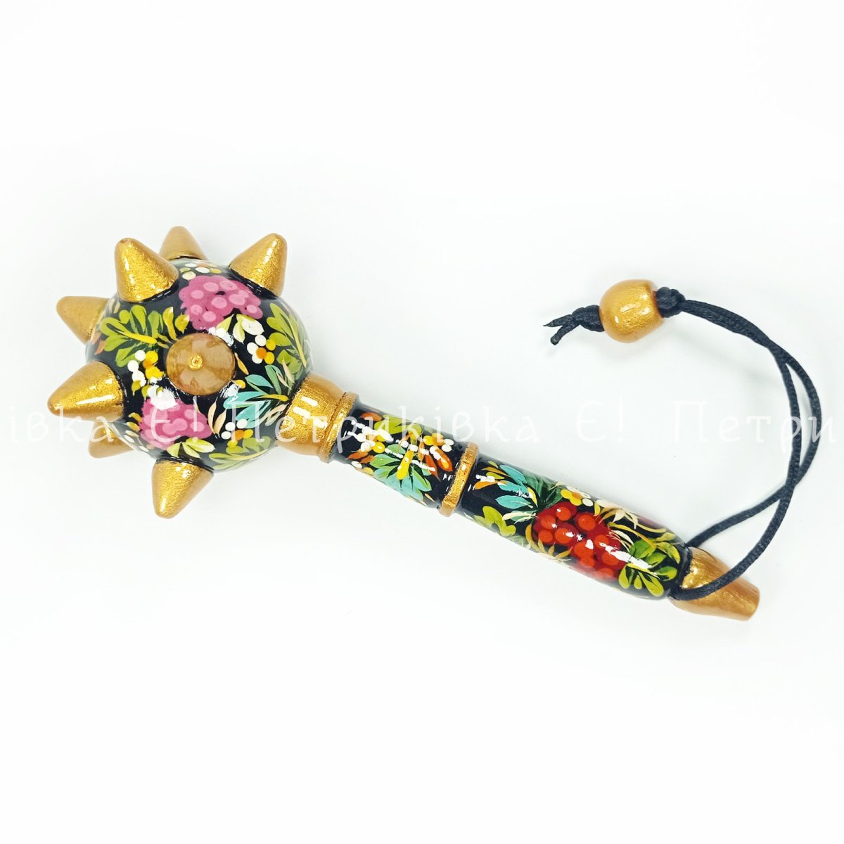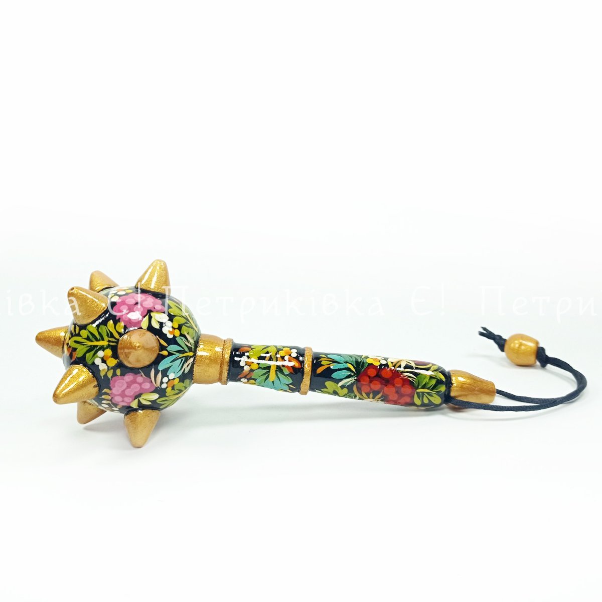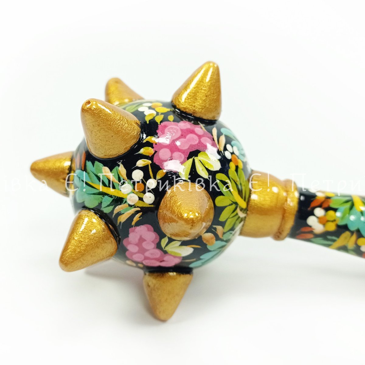 Булава розписана. Довжина - 18 см, діаметр кулі - 5 см, діаметр по шипах (габаритний) - 7 см.