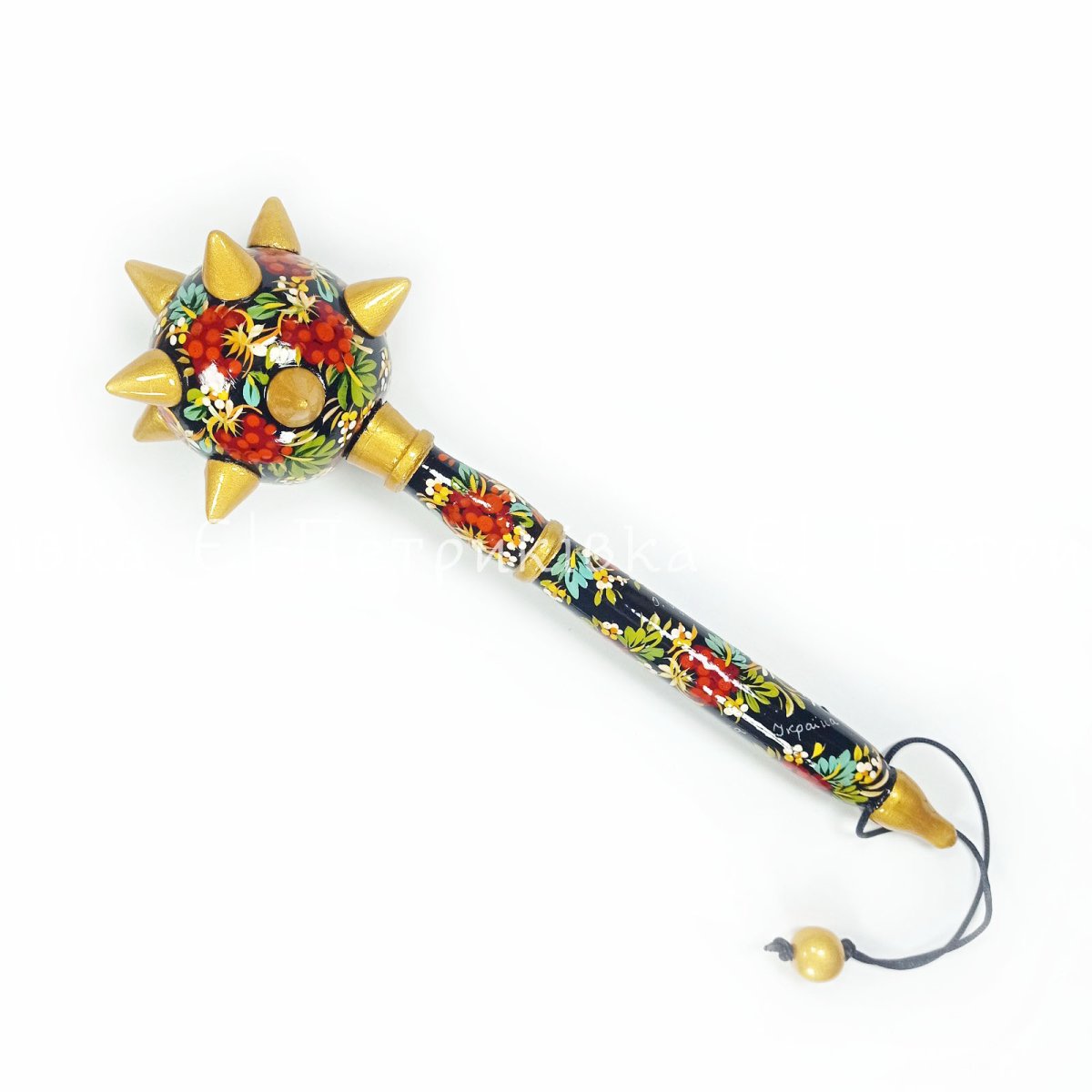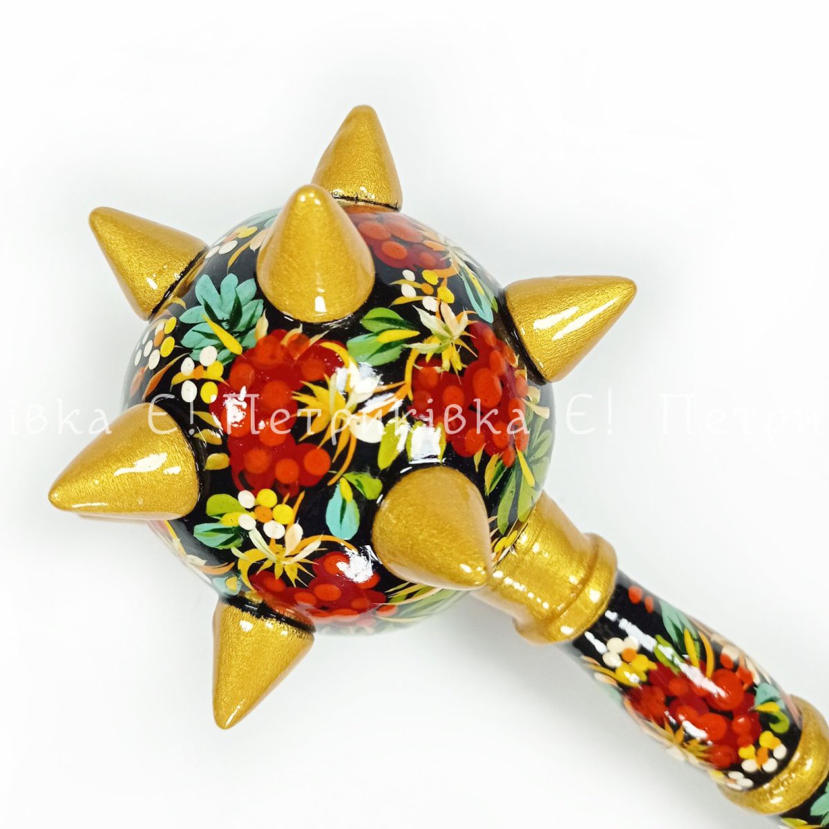 Булава розписана. Довжина - 35 см, діаметр кулі - 7 см, діаметр по шипах (габаритний) - 10 см.