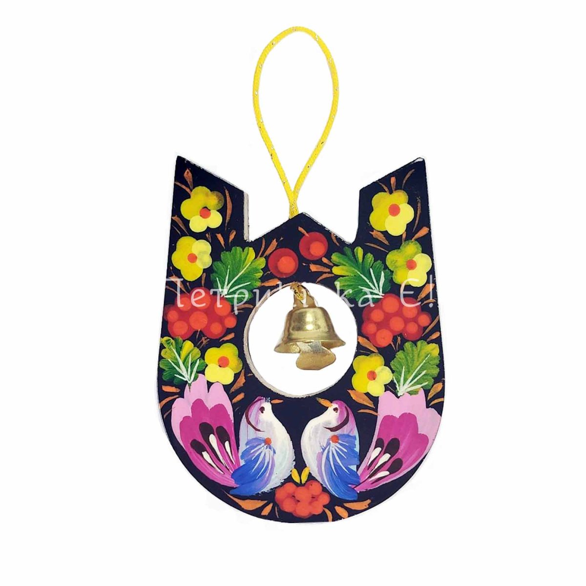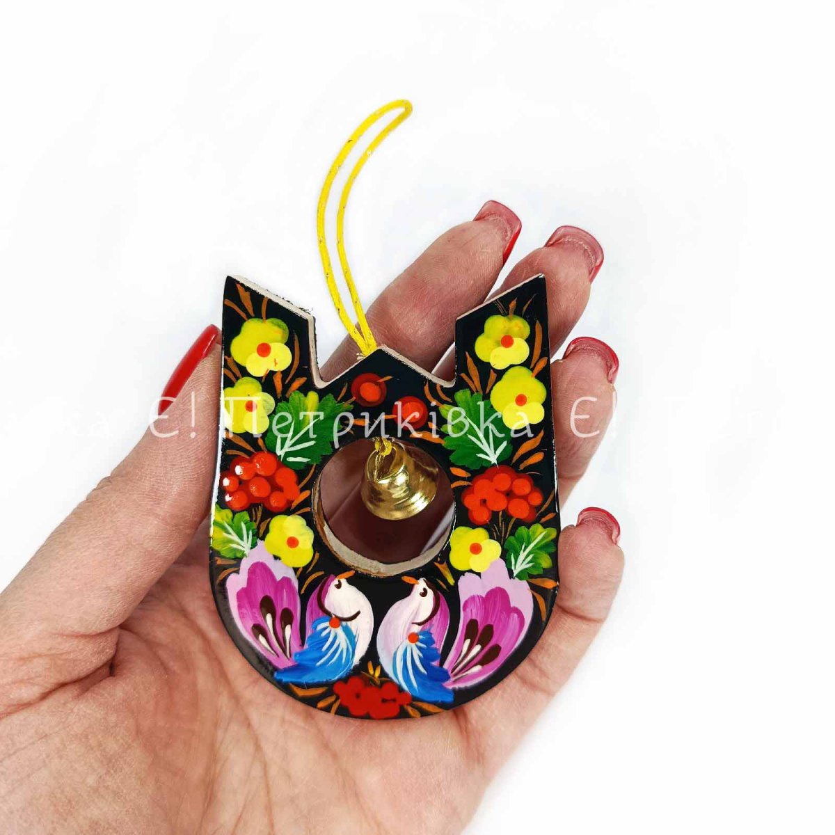 Підвіс з Петриківським розписом "Підкова-оберіг з дзвіночком" розпис с 2-х сторін (висота 7,5 см)