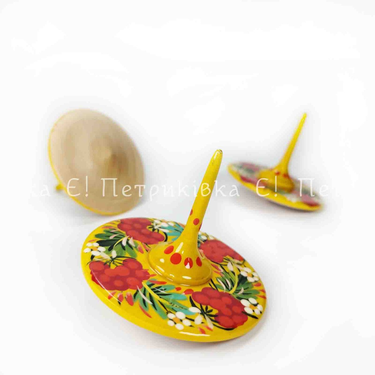 Дзига з Петриківьким розписом "Калинка" жовта