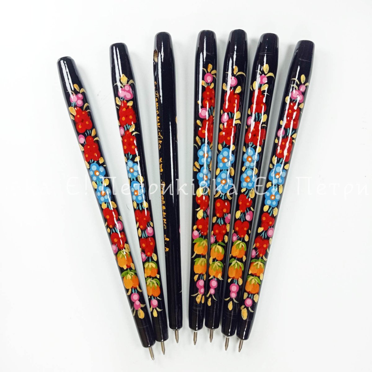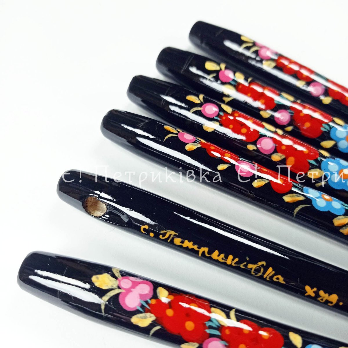 Ручка-свисток дерев'яна, розписана Петриківським розписом.