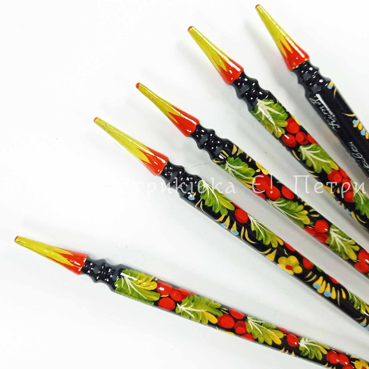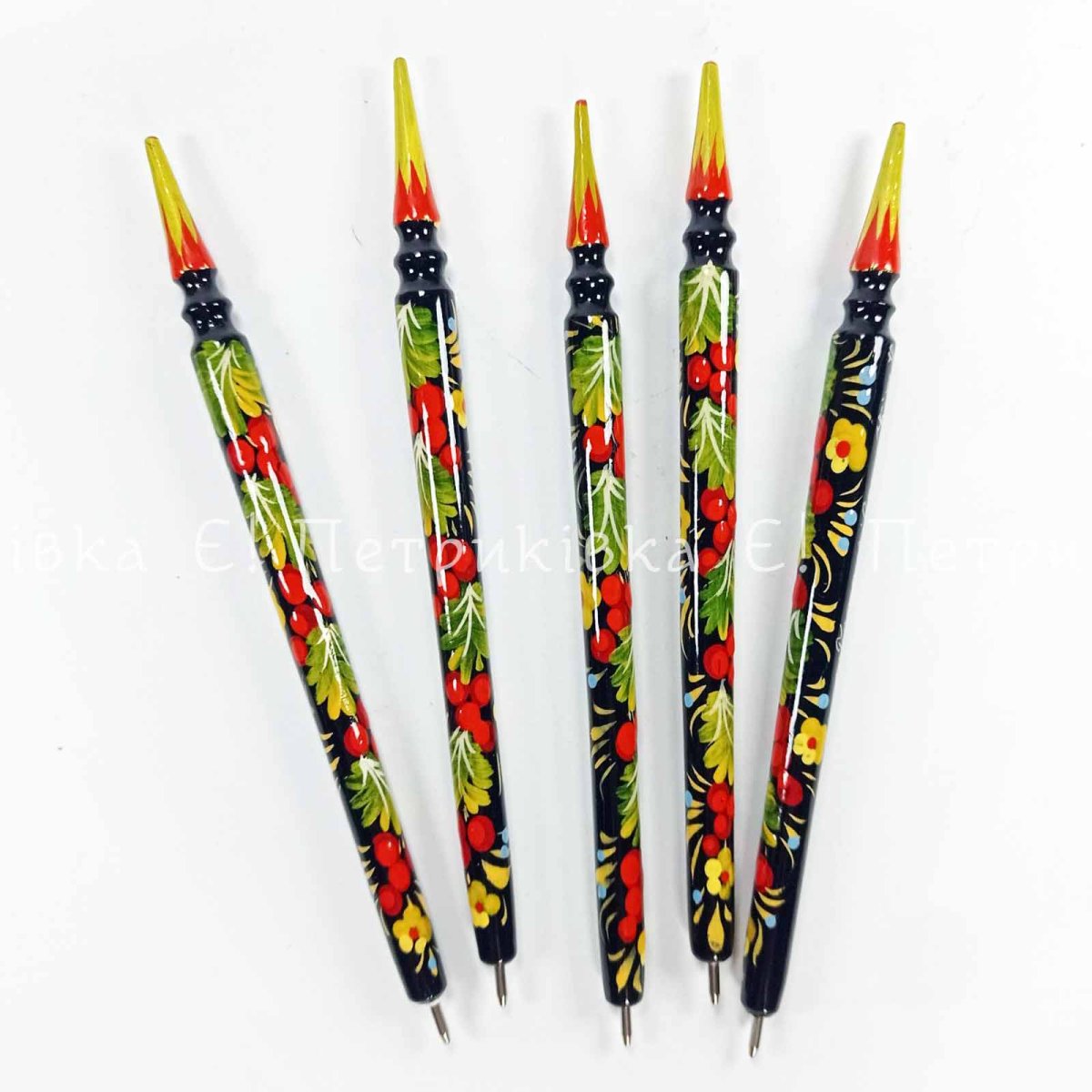 Ручка дерев'яна у вигляді указки, розписана Петриківським розписом.
