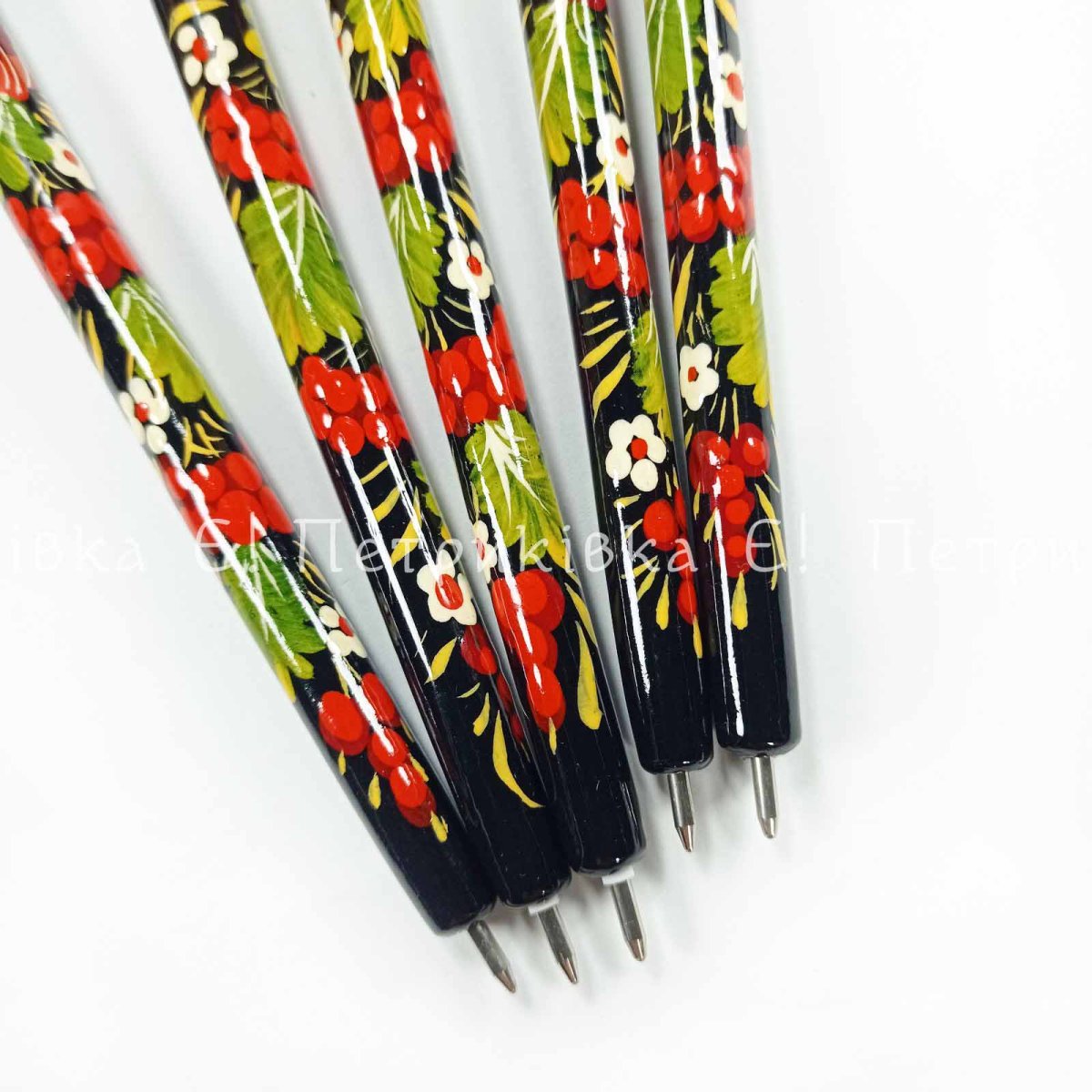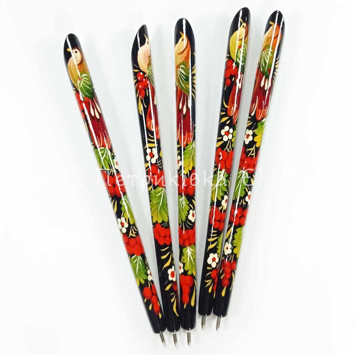Ручка дерев'яна зі скосом, розписана Петриківським розписом.