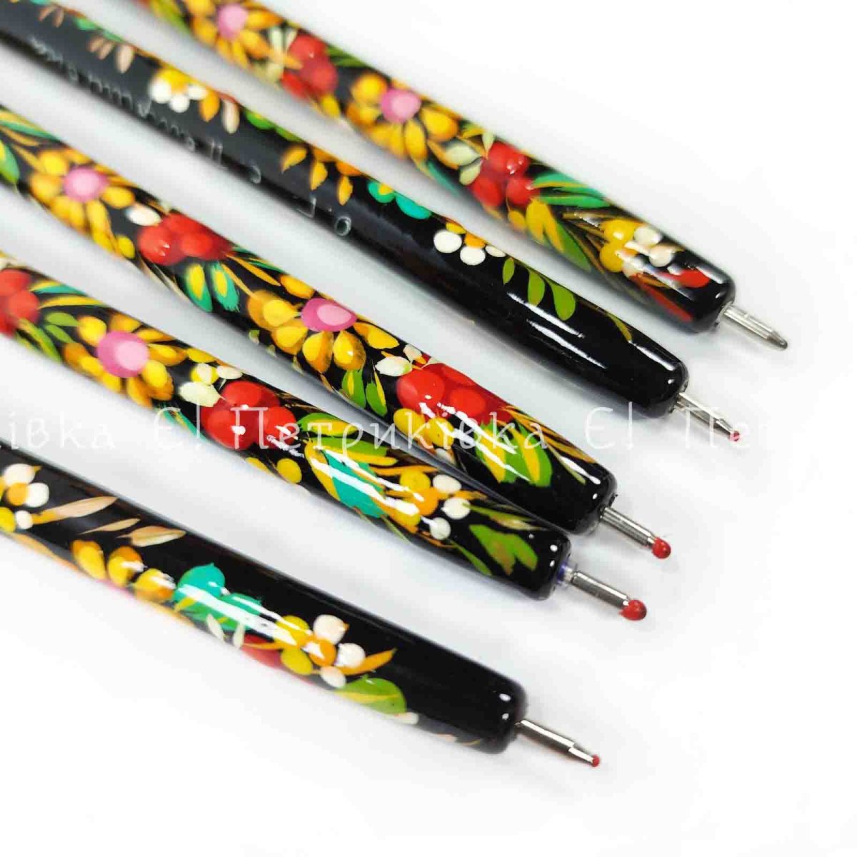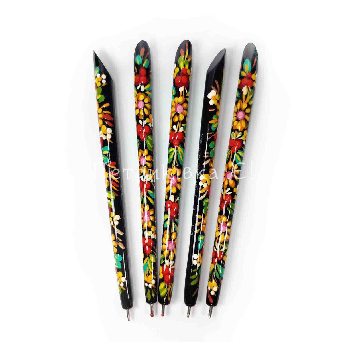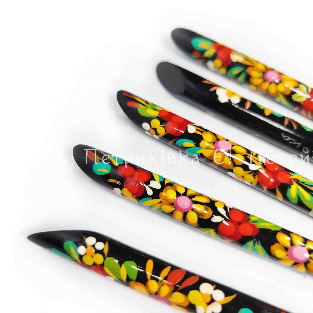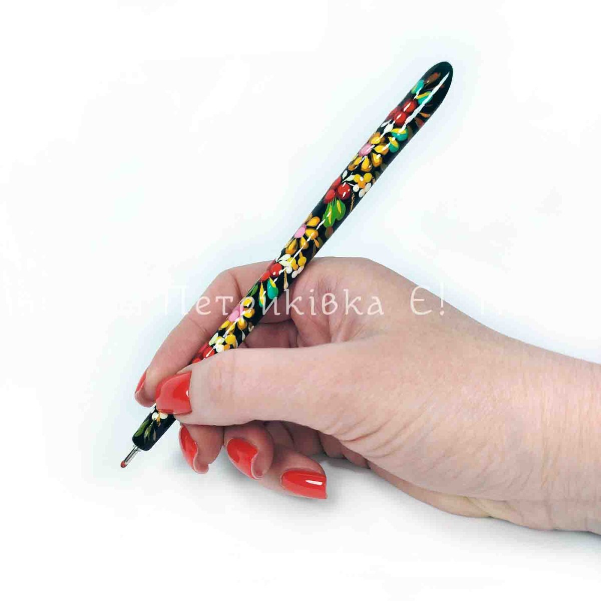 Ручка дерев'яна зі скосом, розписана Петриківським розписом.