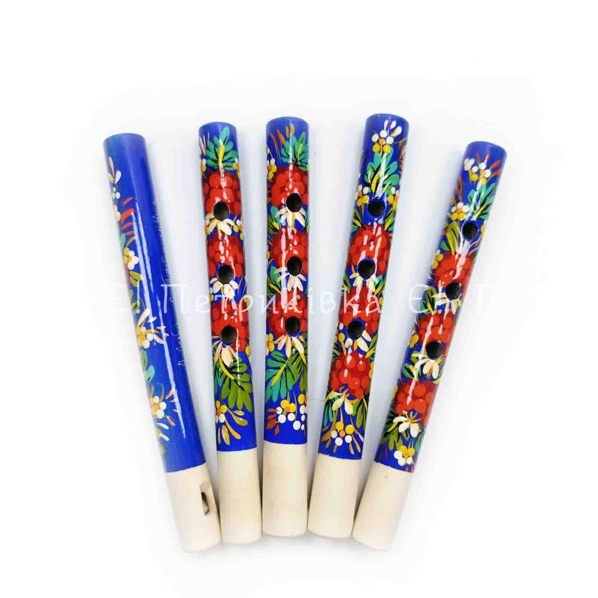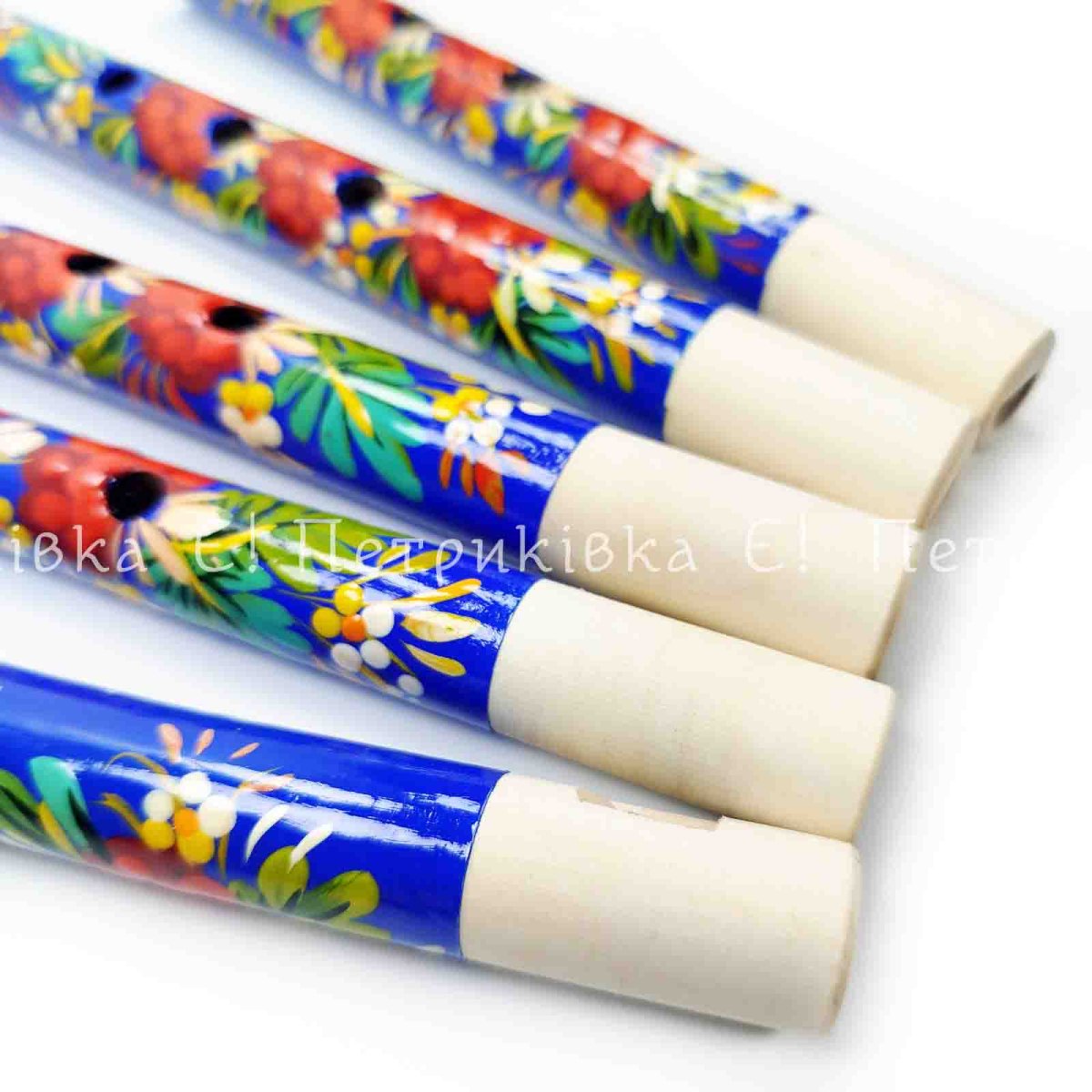 Сопілка петриківський розпис мала 17 см "Калинка" по синьому