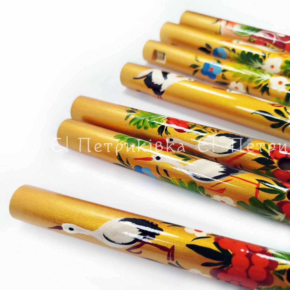 Сопілка середня 26 см "Лелеки на калині" по золоту