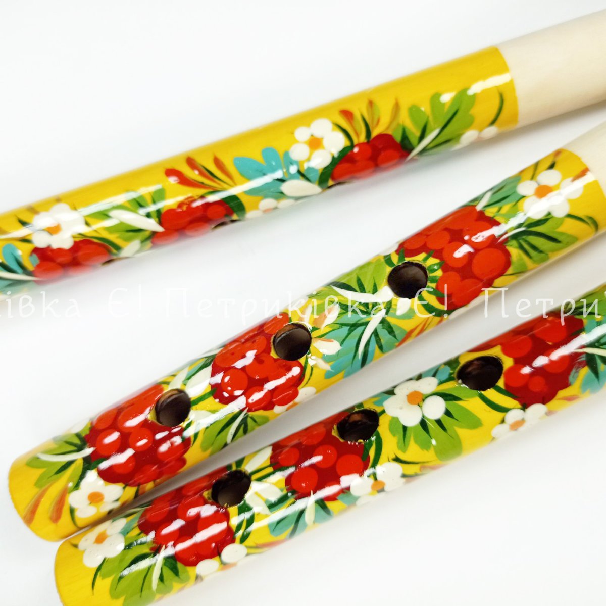 Сопілка мала 17 см "Яскрава петриківська по жовтому"