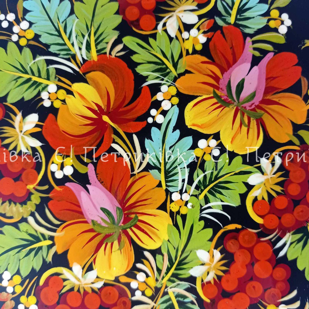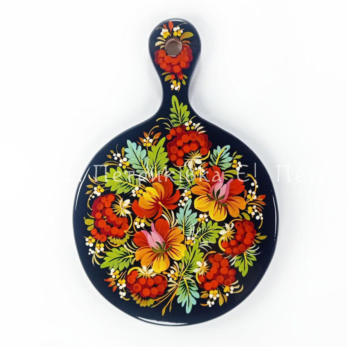 Дошка фігурна з ручкой з Петриківським розписом "Яскравий букет"