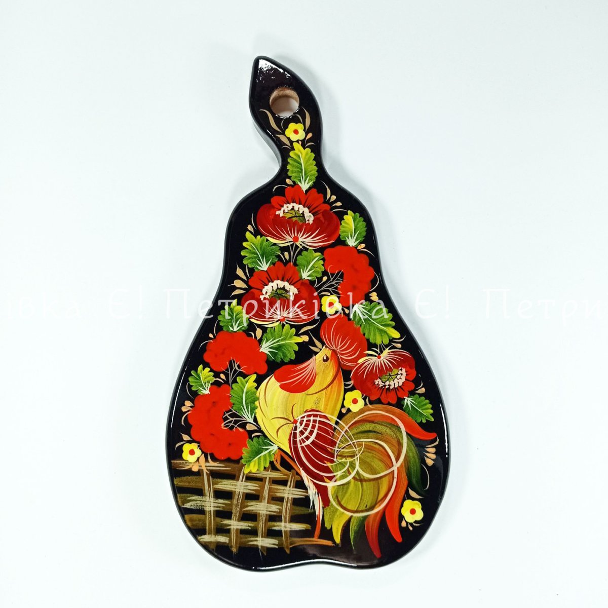 Дошка грушка мала з Петриківським розписом "Півник у маках"
