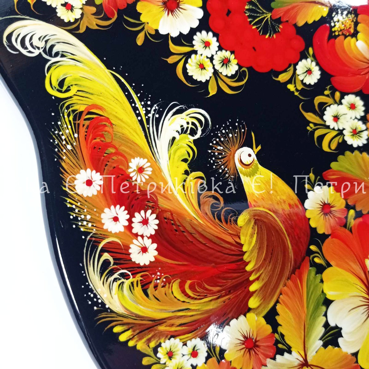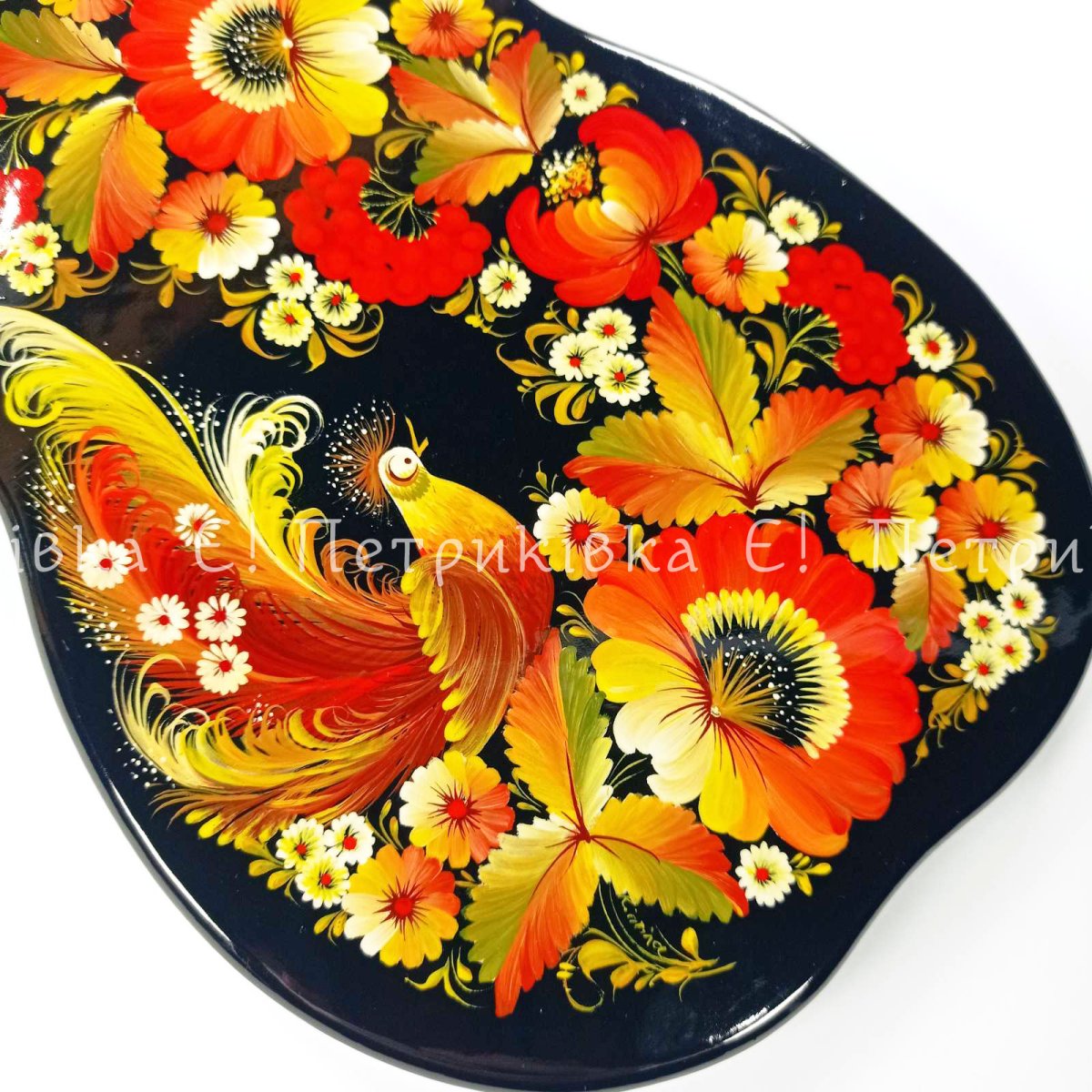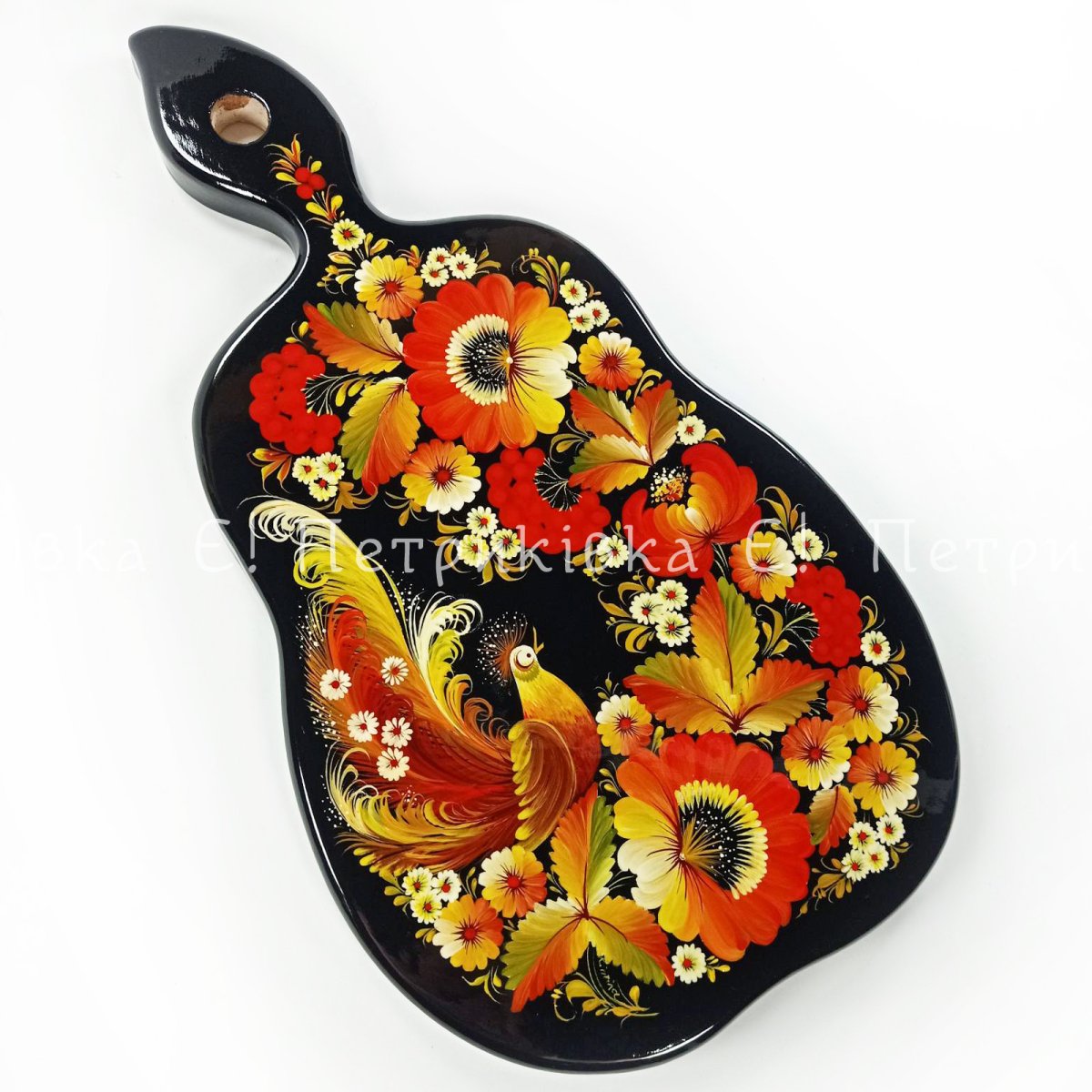 Дошка грушка велика (31х18 см) з Петриківським розписом "Казкова"