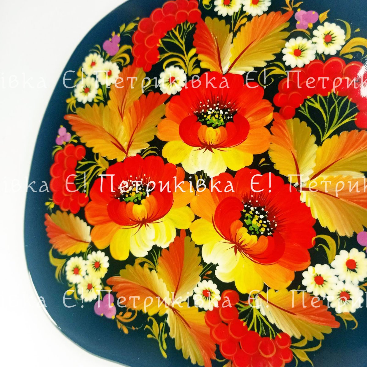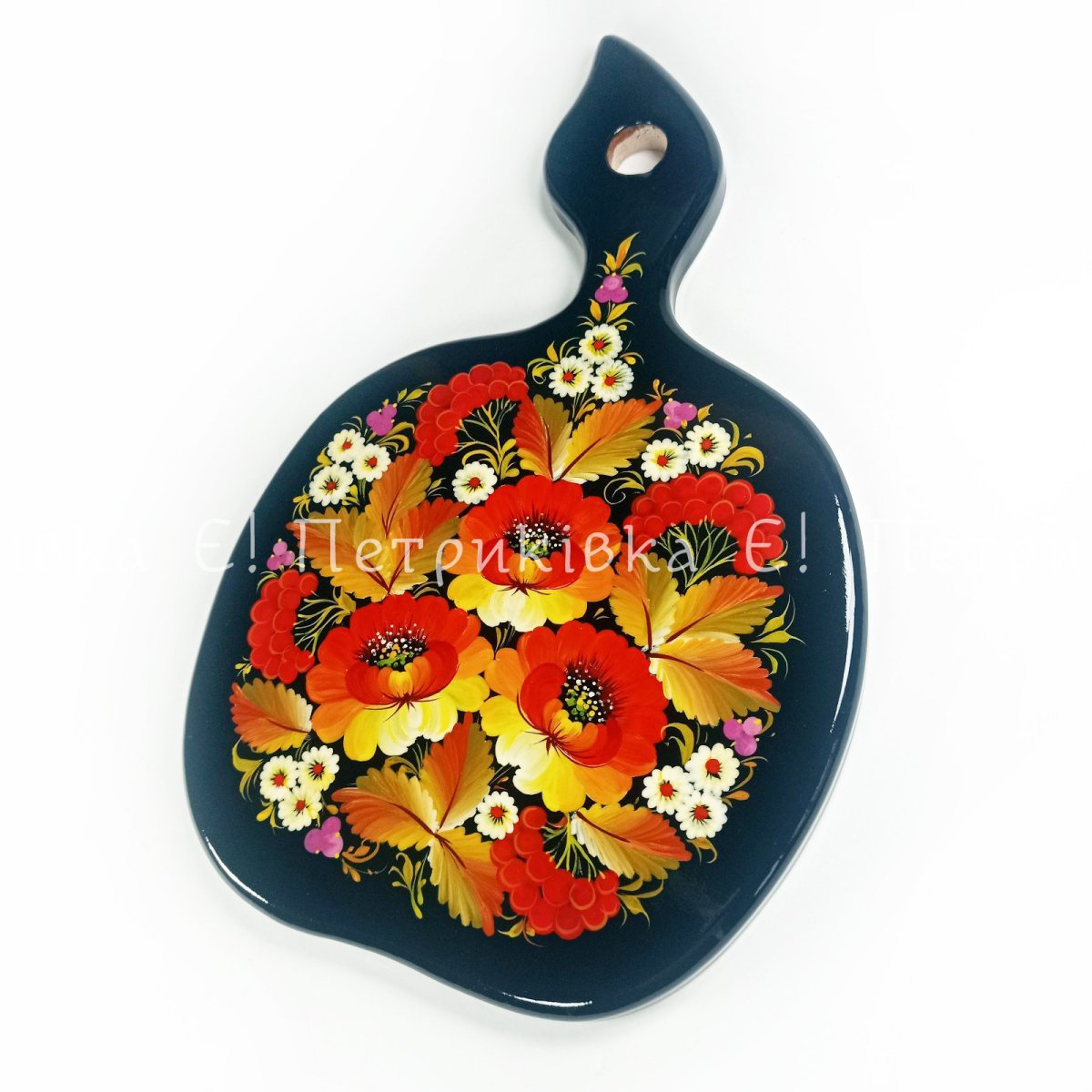 Дошка яблуко мале з Петриківським розписом "Осінній букет"