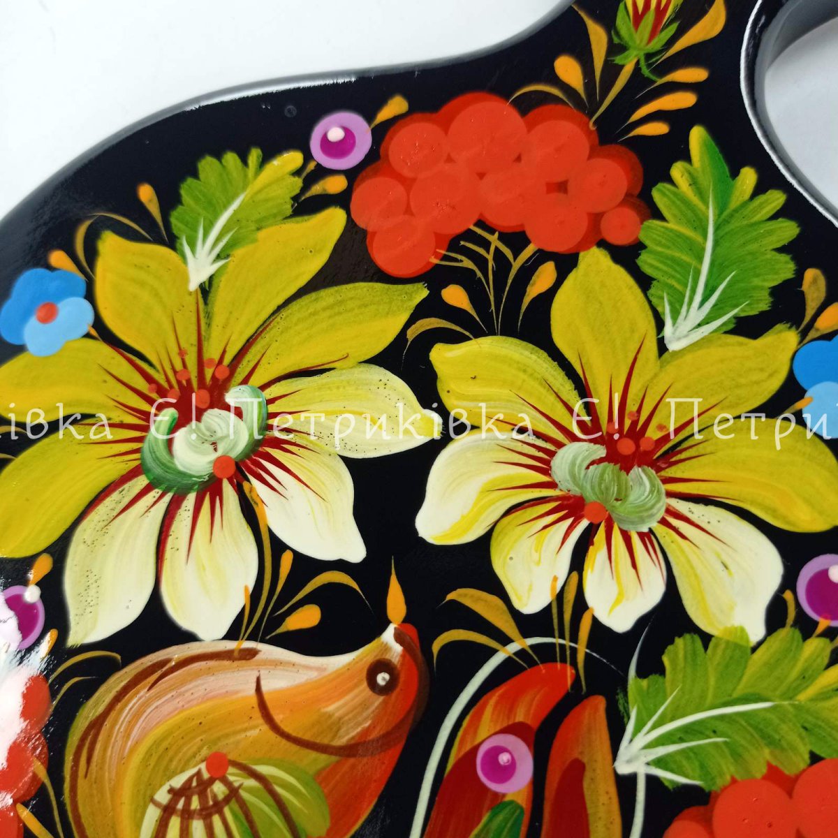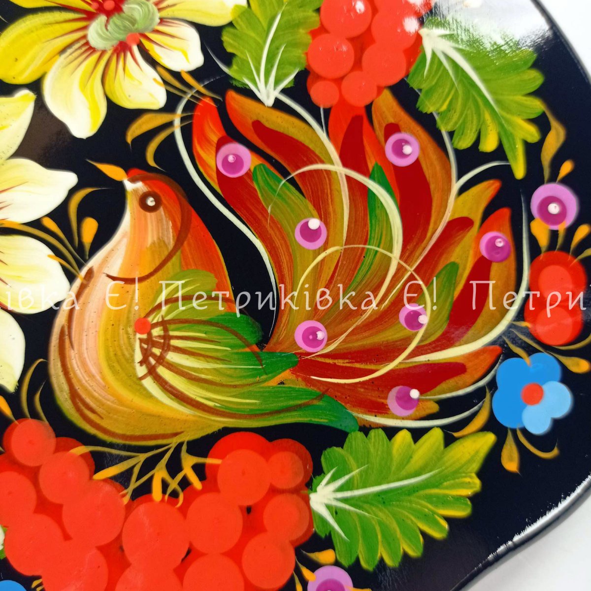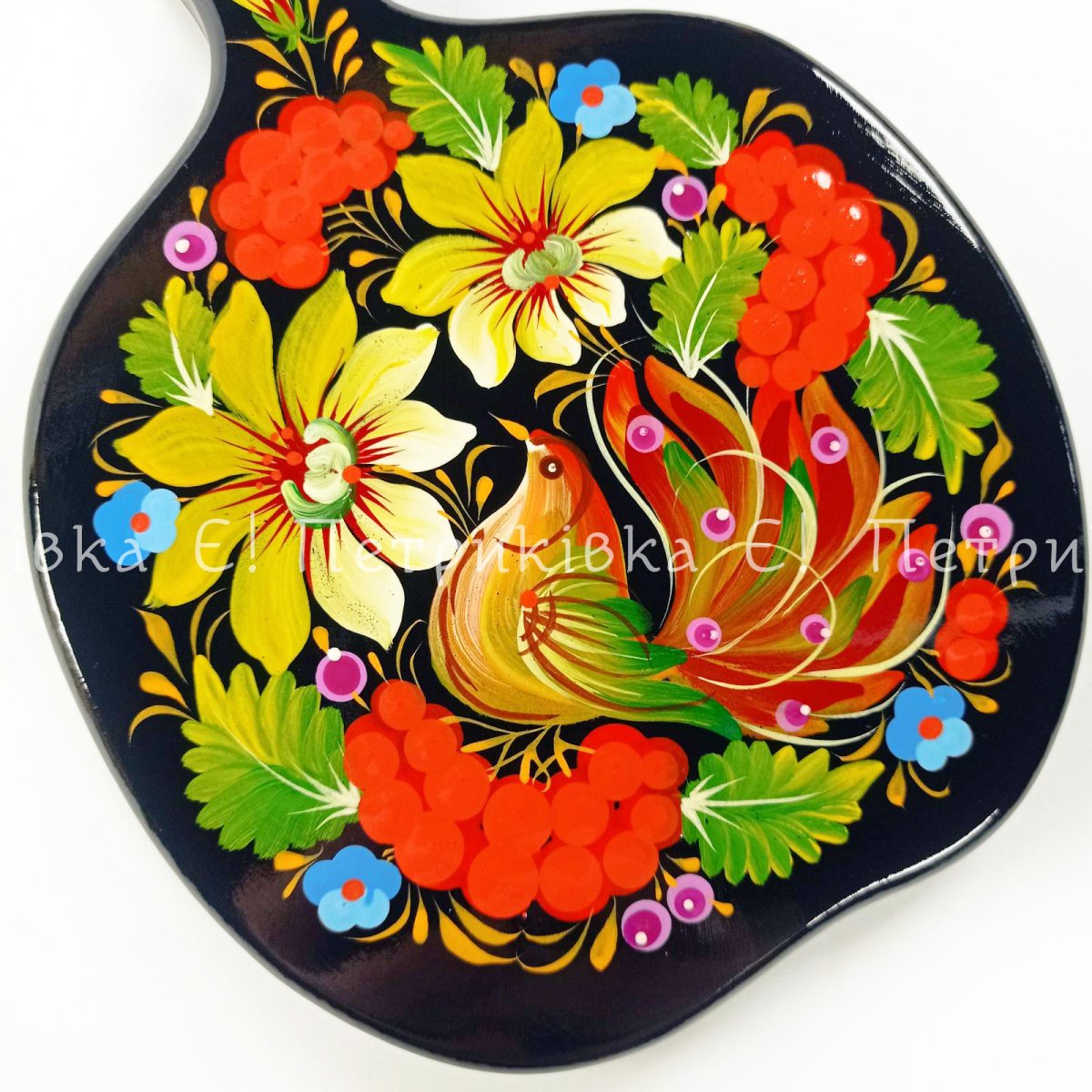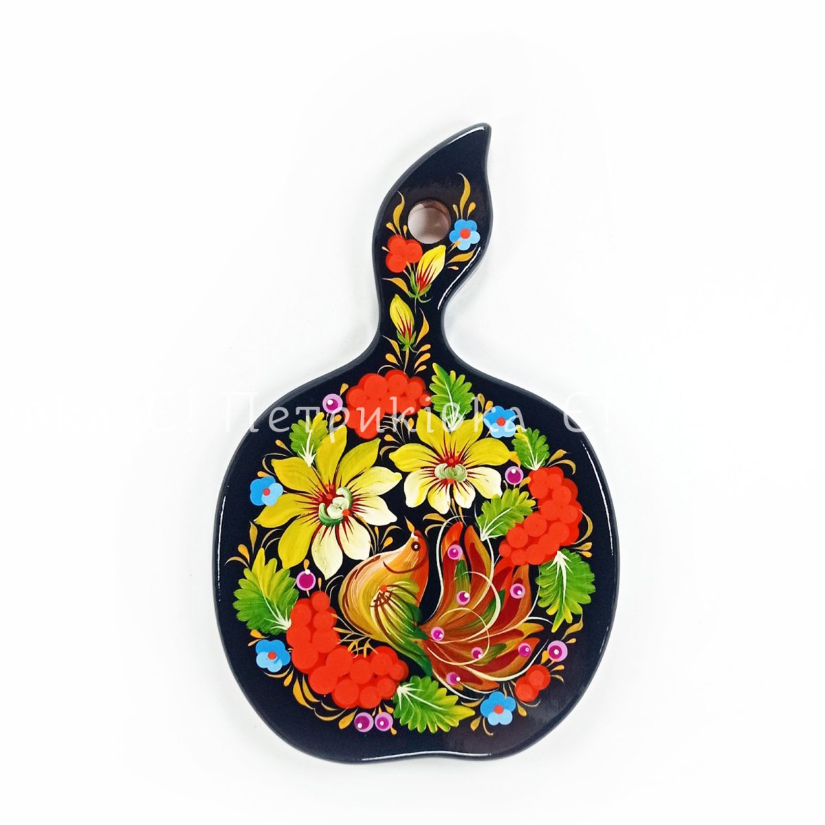 Дошка яблуко мале з Петриківським розписом "З птахом"