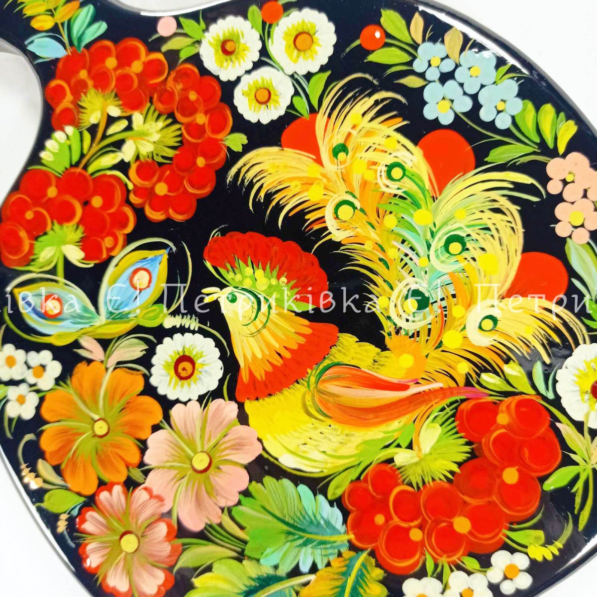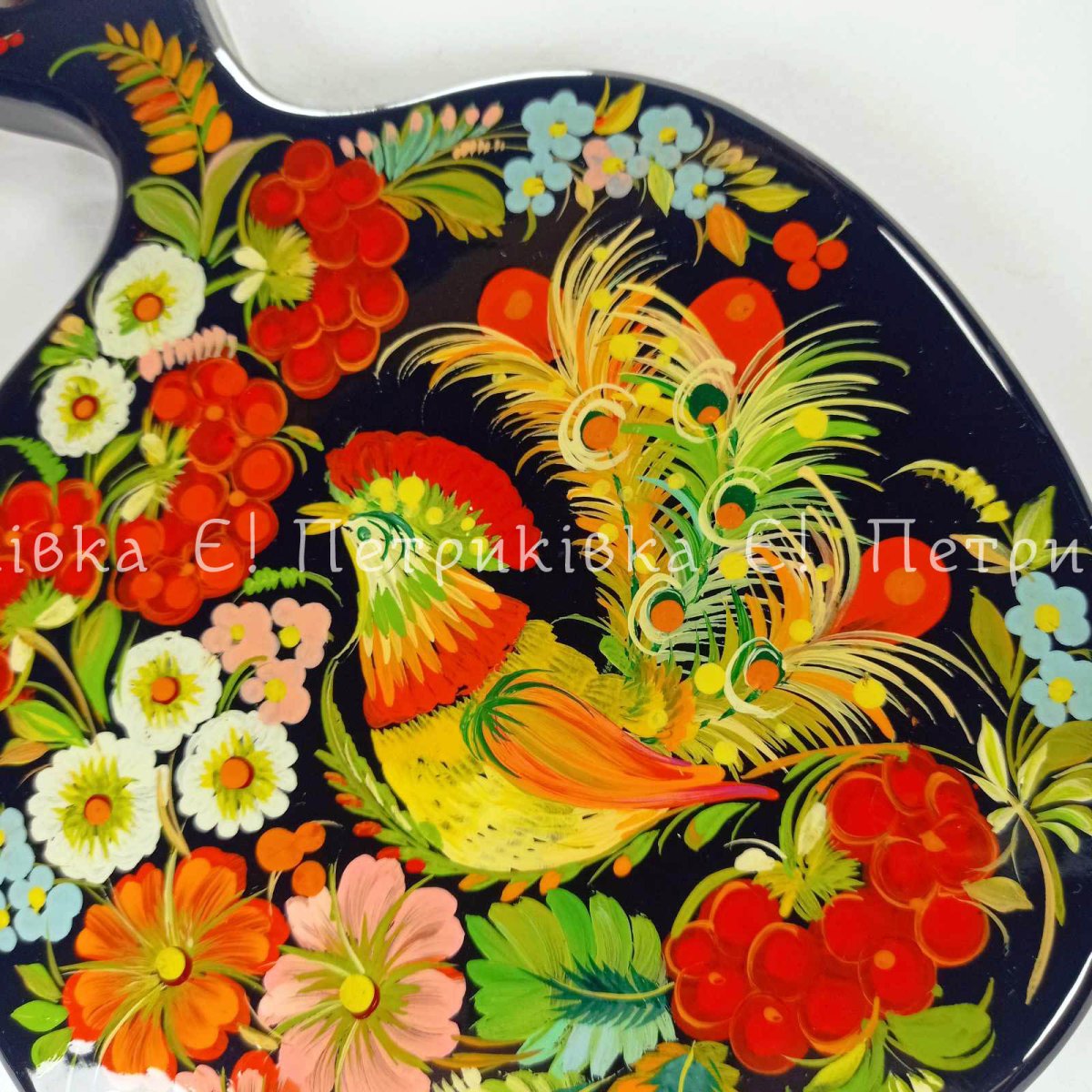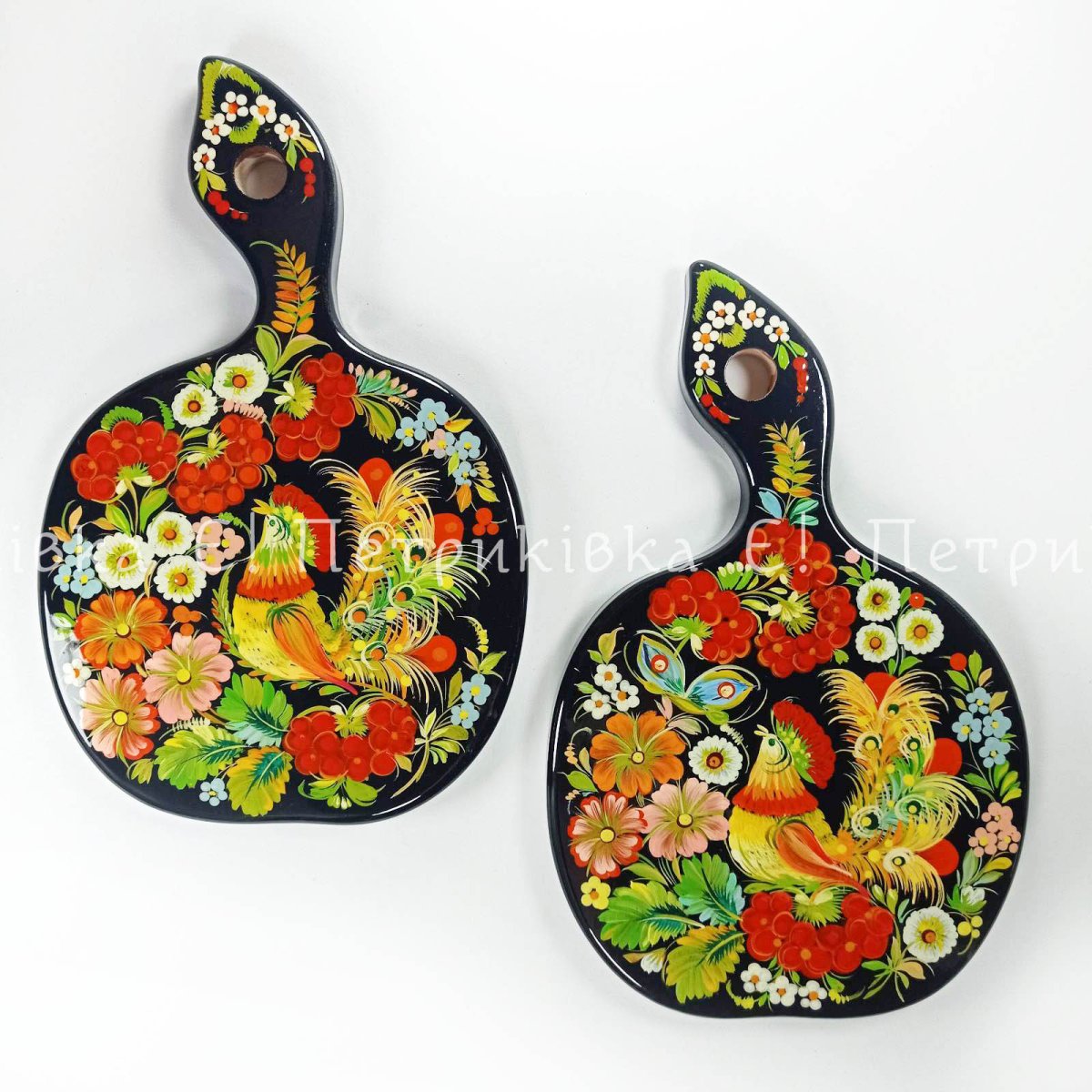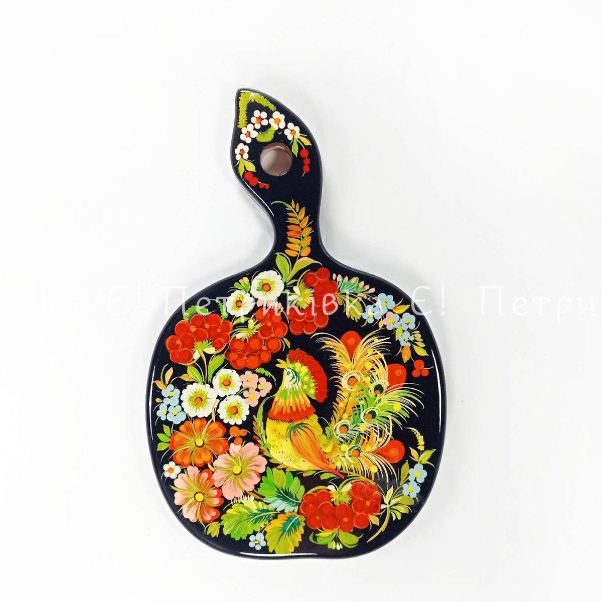 Дошка яблуко мале з Петриківським розписом "З пташкою"