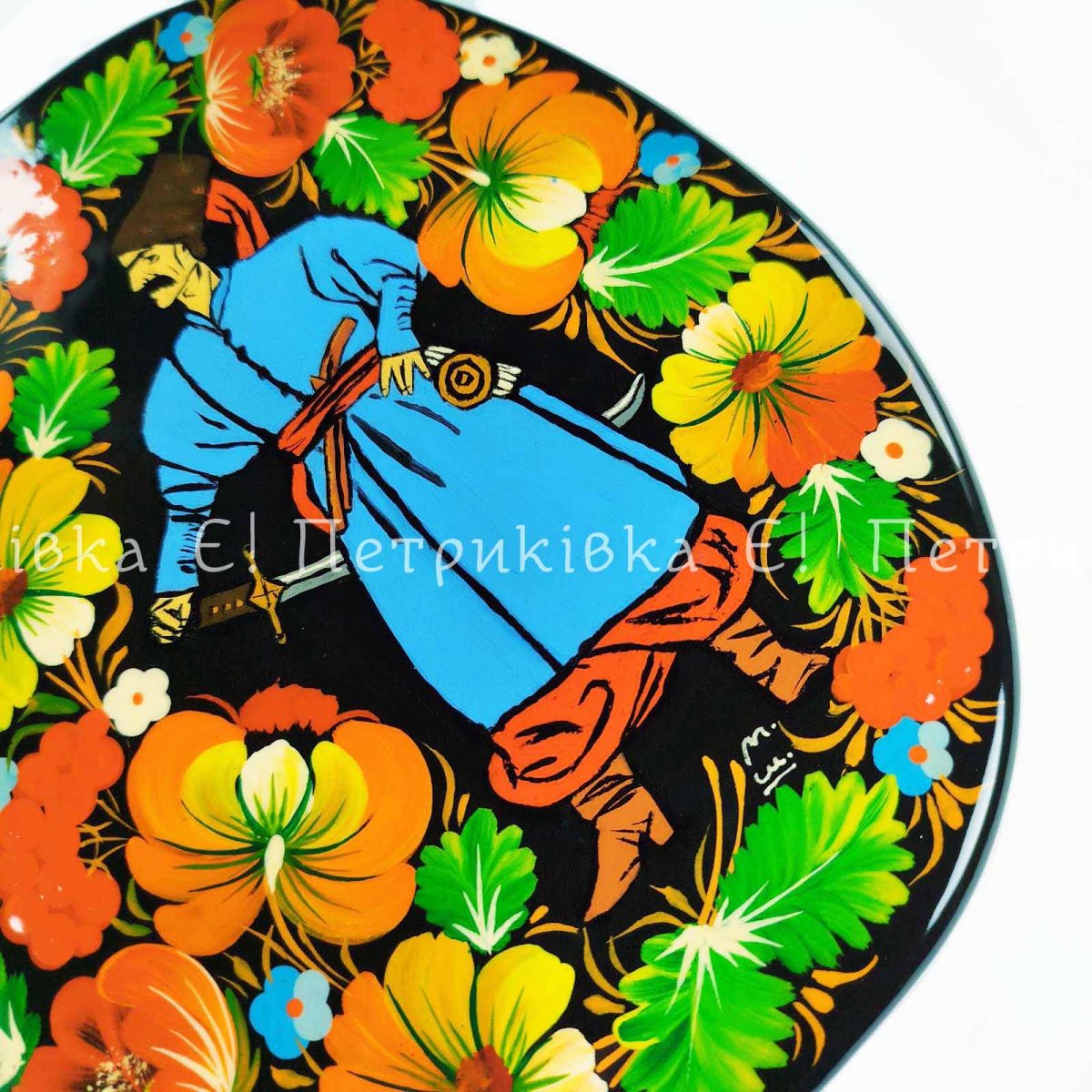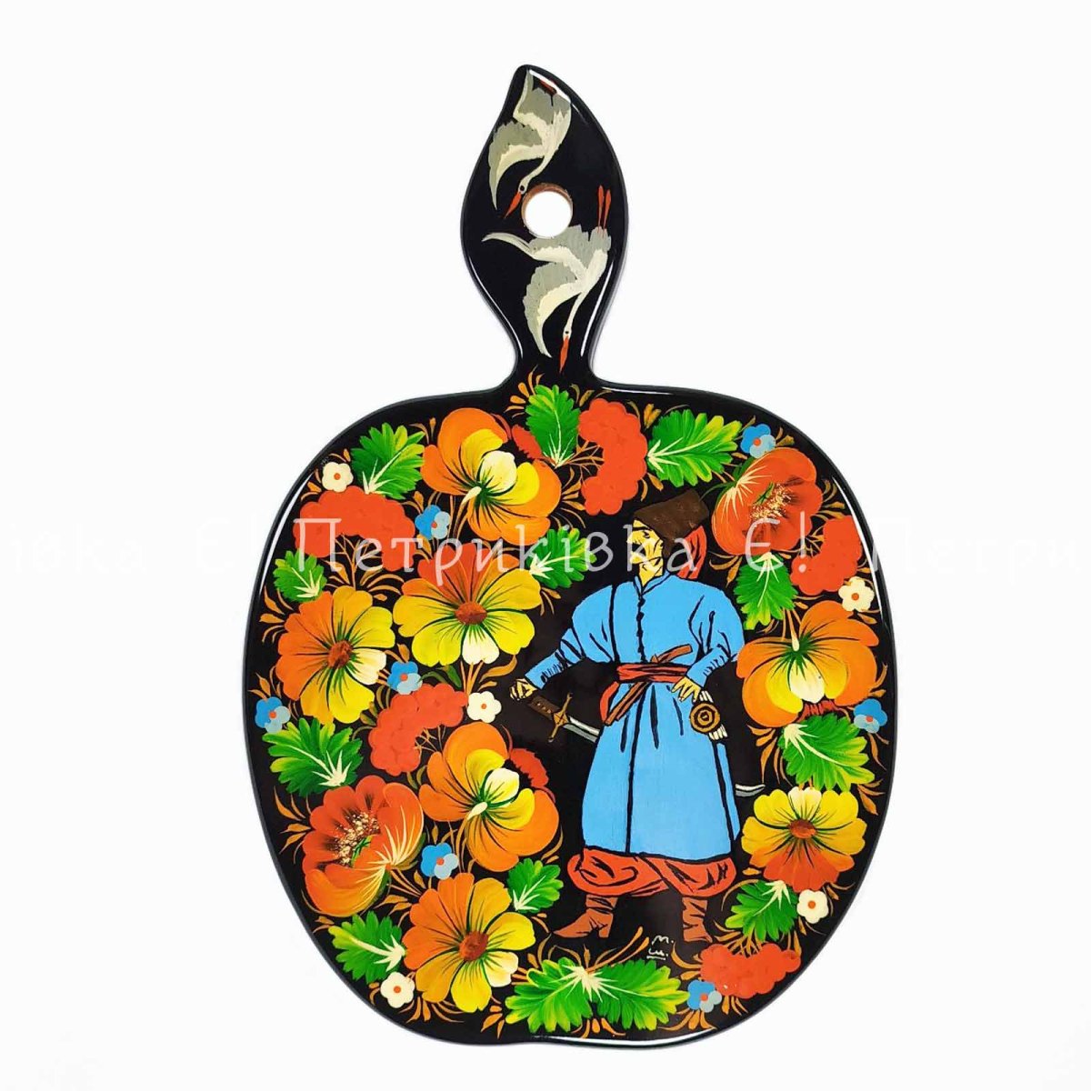 • Дошка яблуко велике (29х20 см) з Петриківським розписом "Козак"