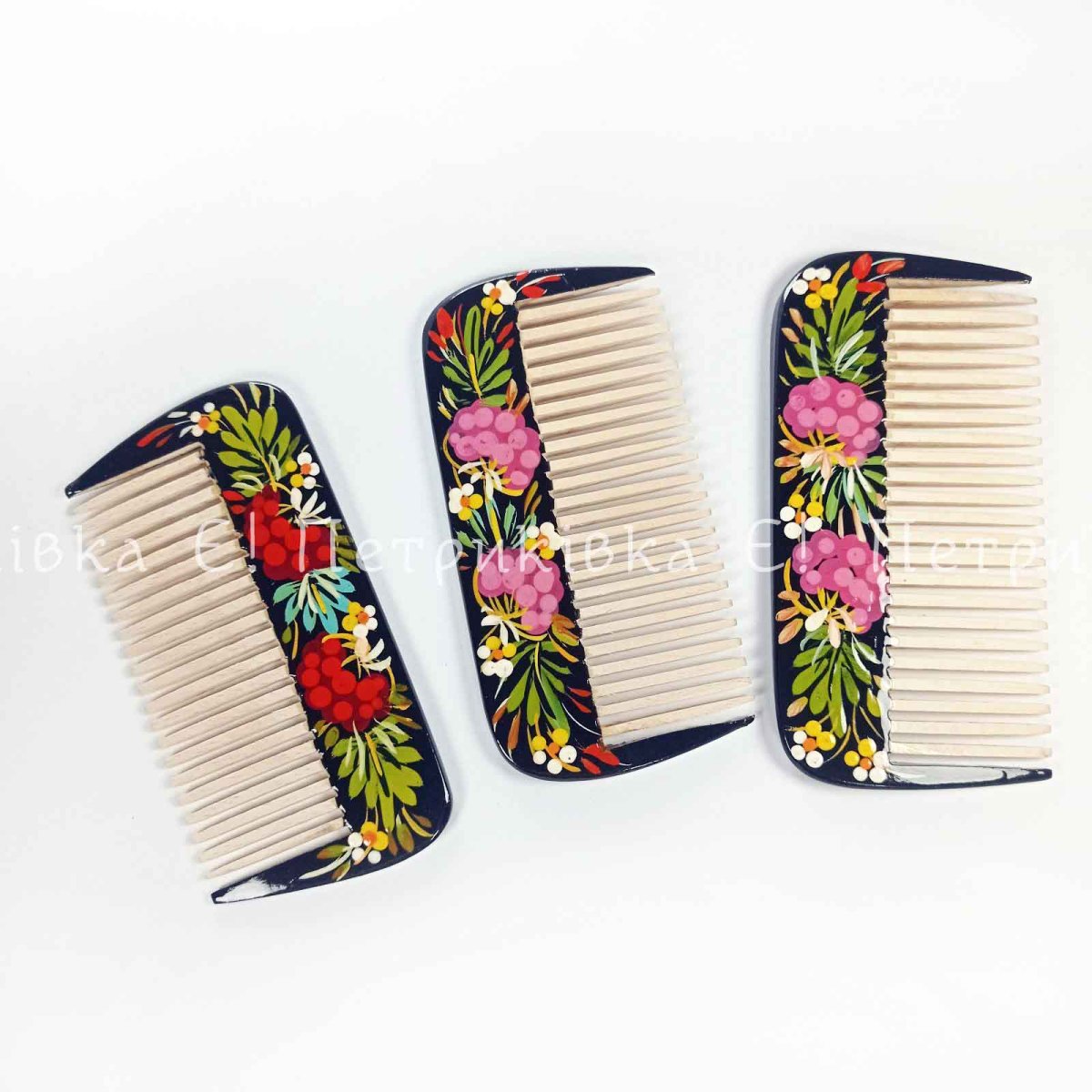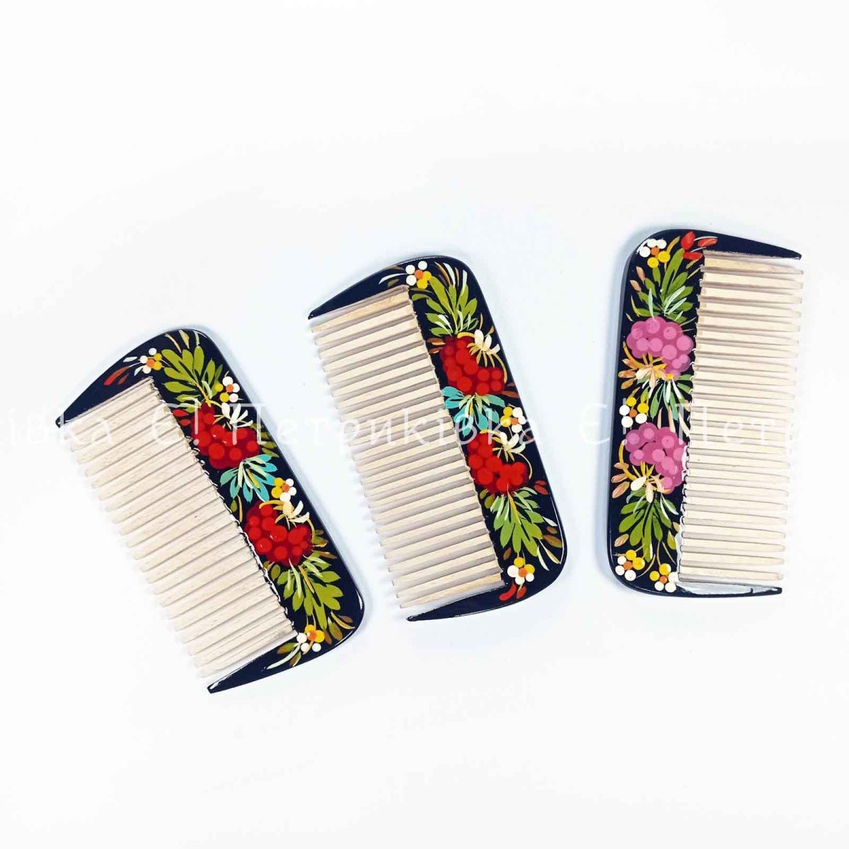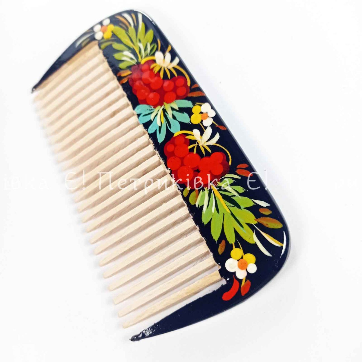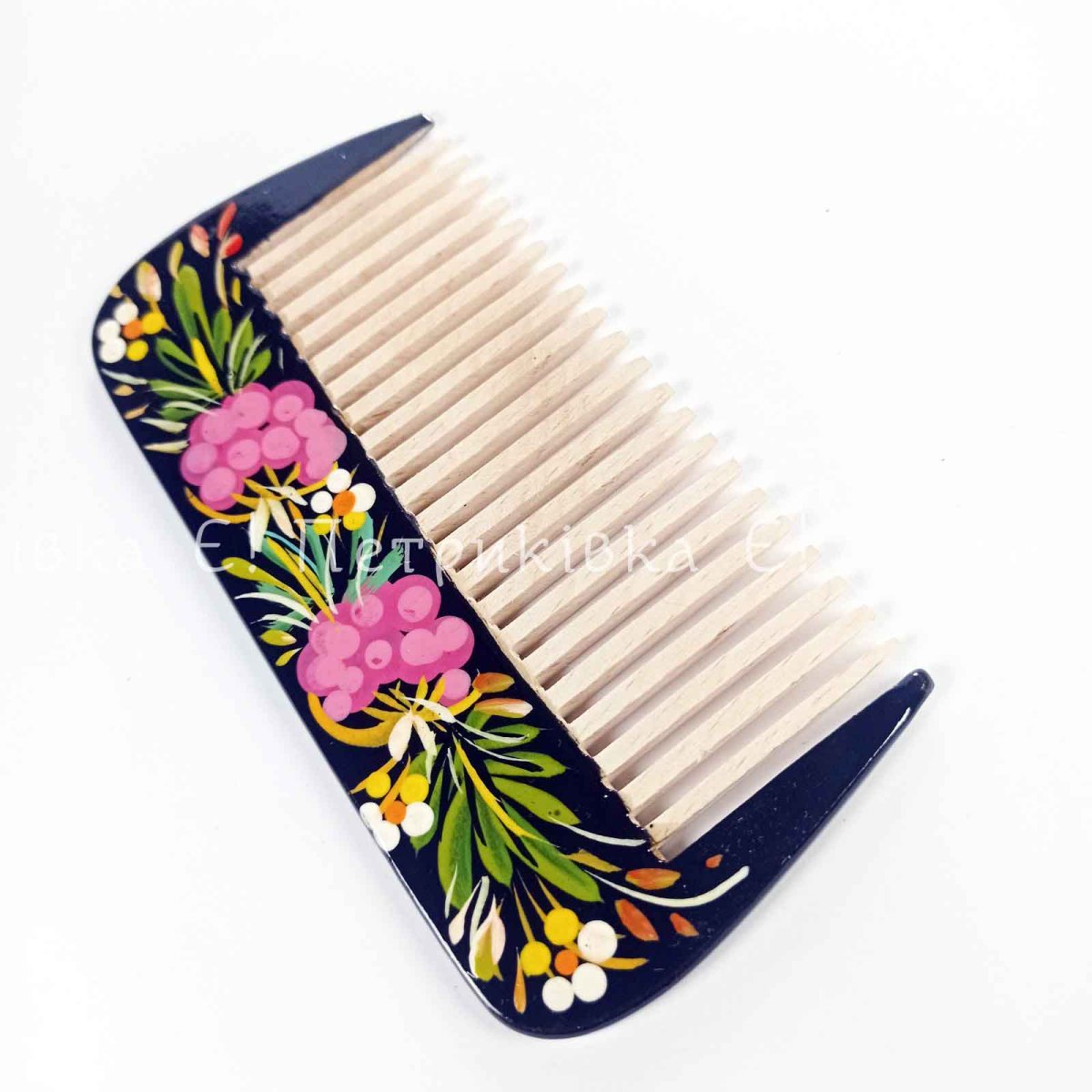 Гребінць з натурального дерева з Петриківьким розписом. Розпис на двох боках різний!