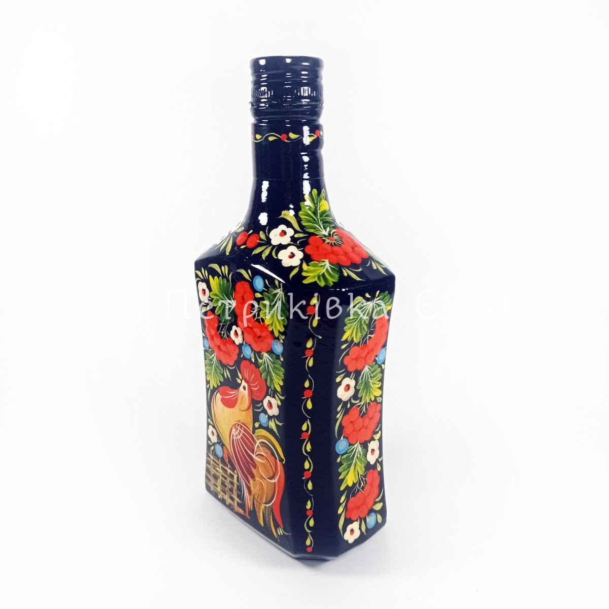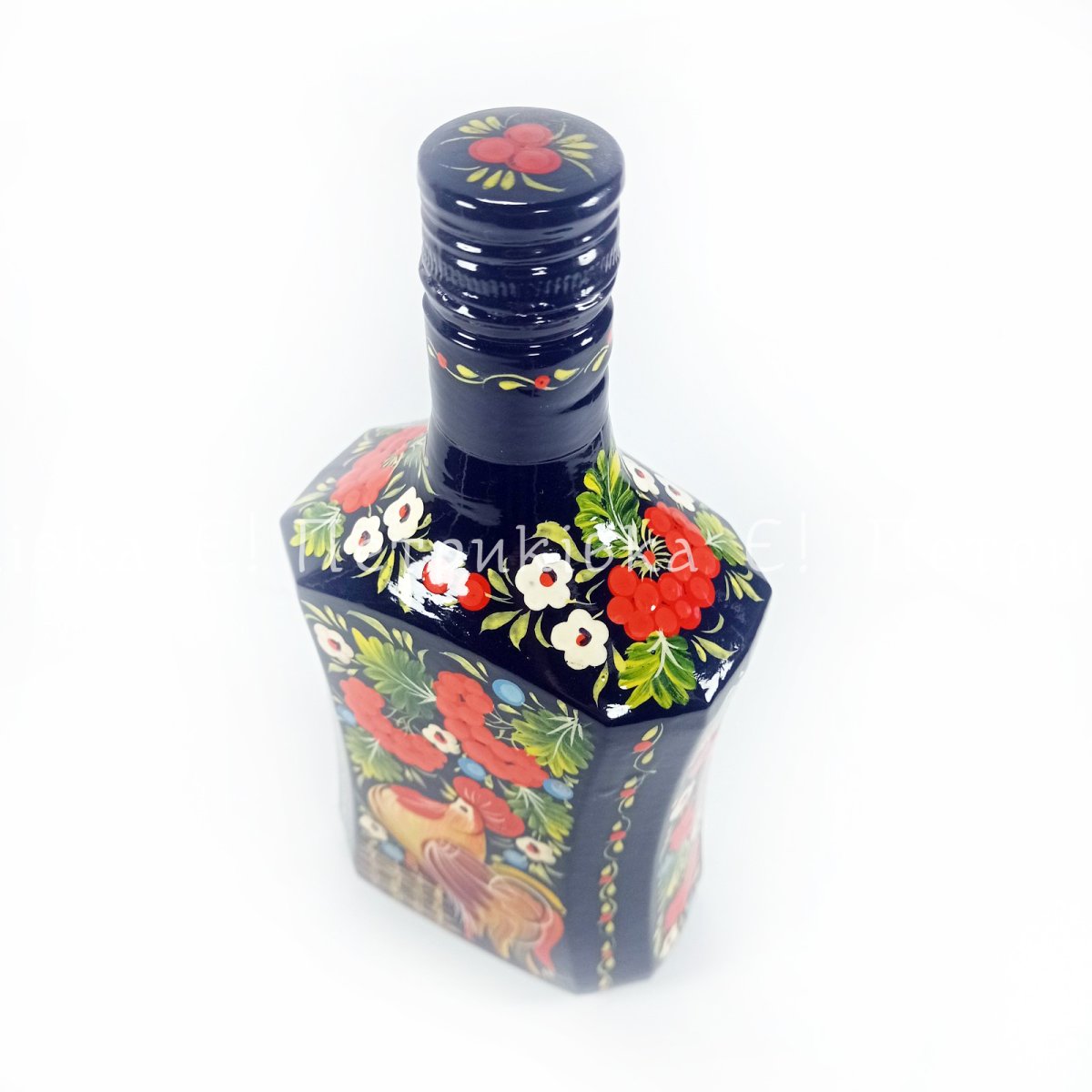 Пляшка розписана, об'єм 0,5 л, матеріал - скло. Висота - 21 см.