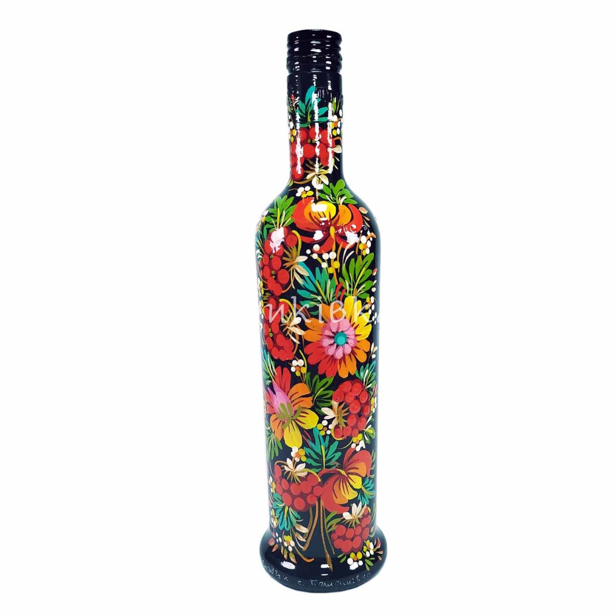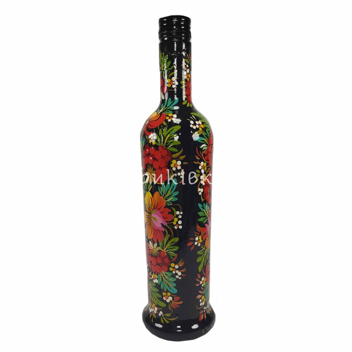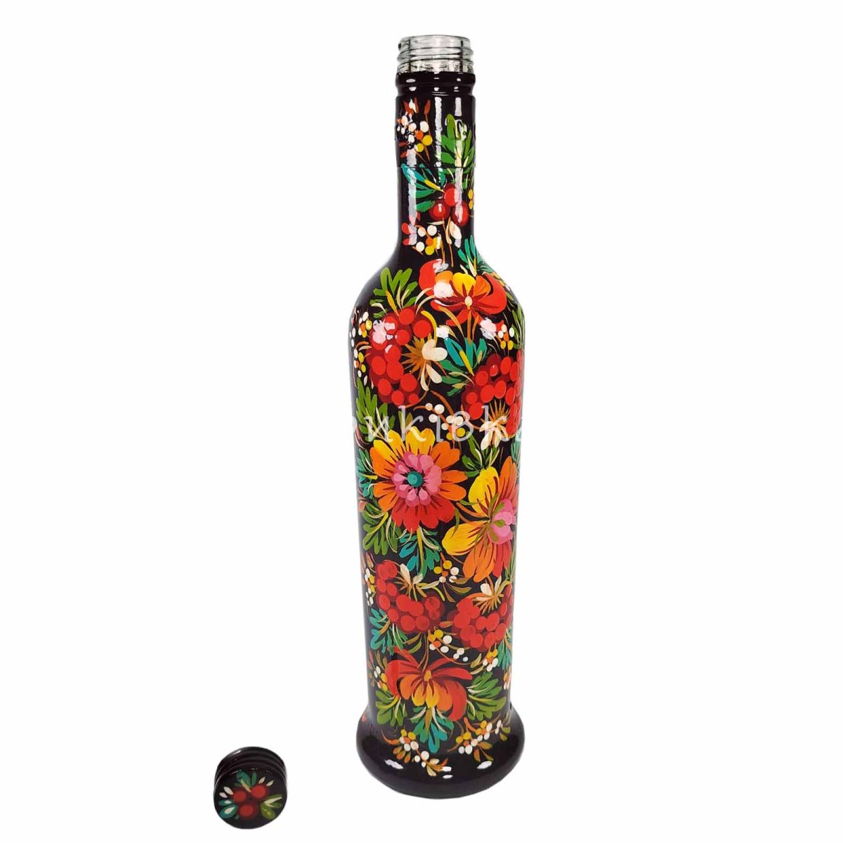 Пляшка розписана, об'єм 0,5 л, матеріал - скло. Висота - 31 см, діаметр - 6,3 см.