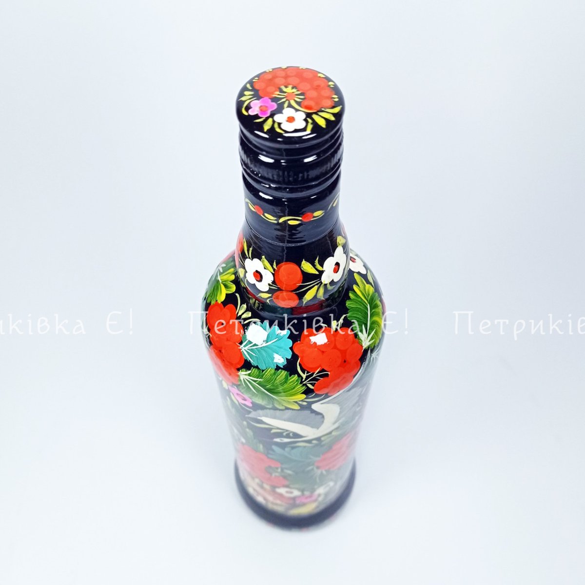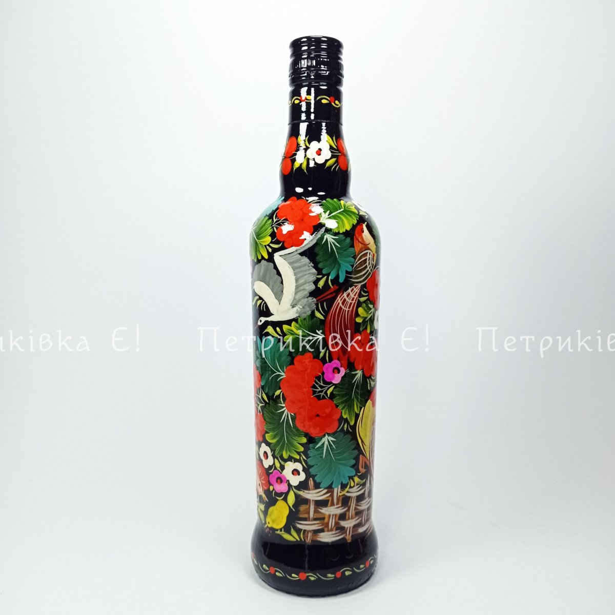 Пляшка розписана, об'єм 0,7 л, матеріал - скло. Висота - 30 см, діаметр - 7,3 см