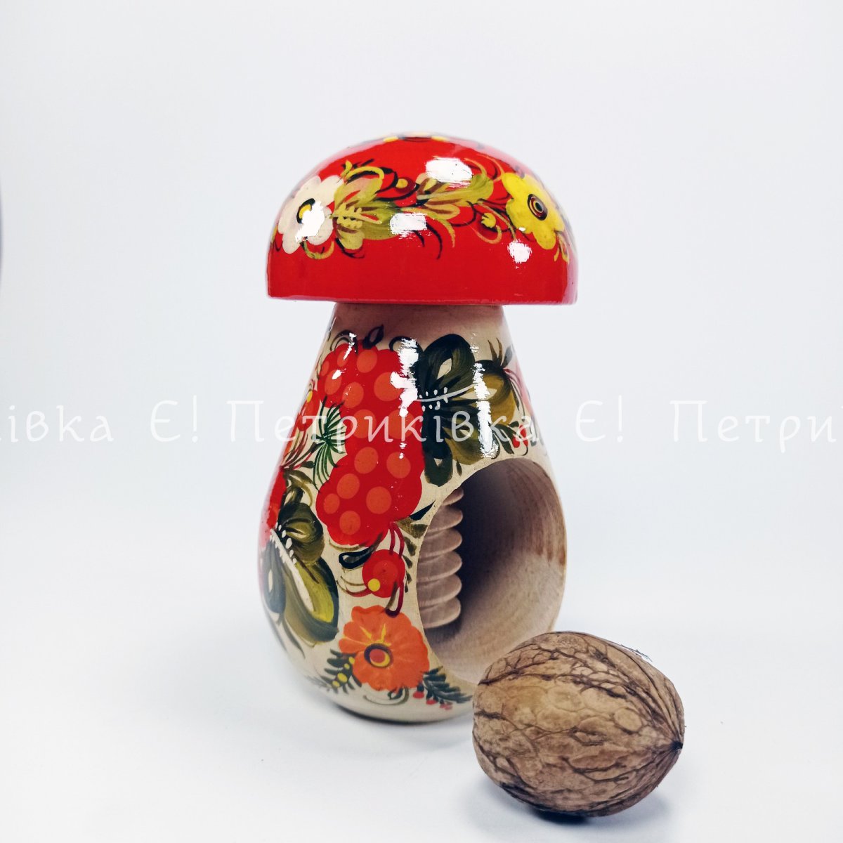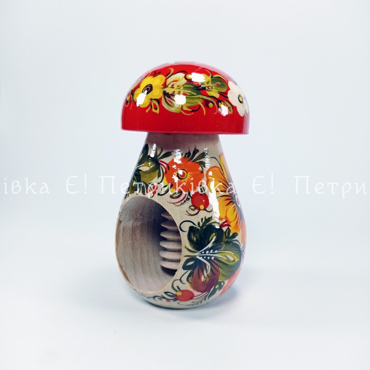 Горіхокола зроблено з деревини бука. Висота - 11 см, діаметр - 6,5 см. Діаметр отвору для оріху - 4 см