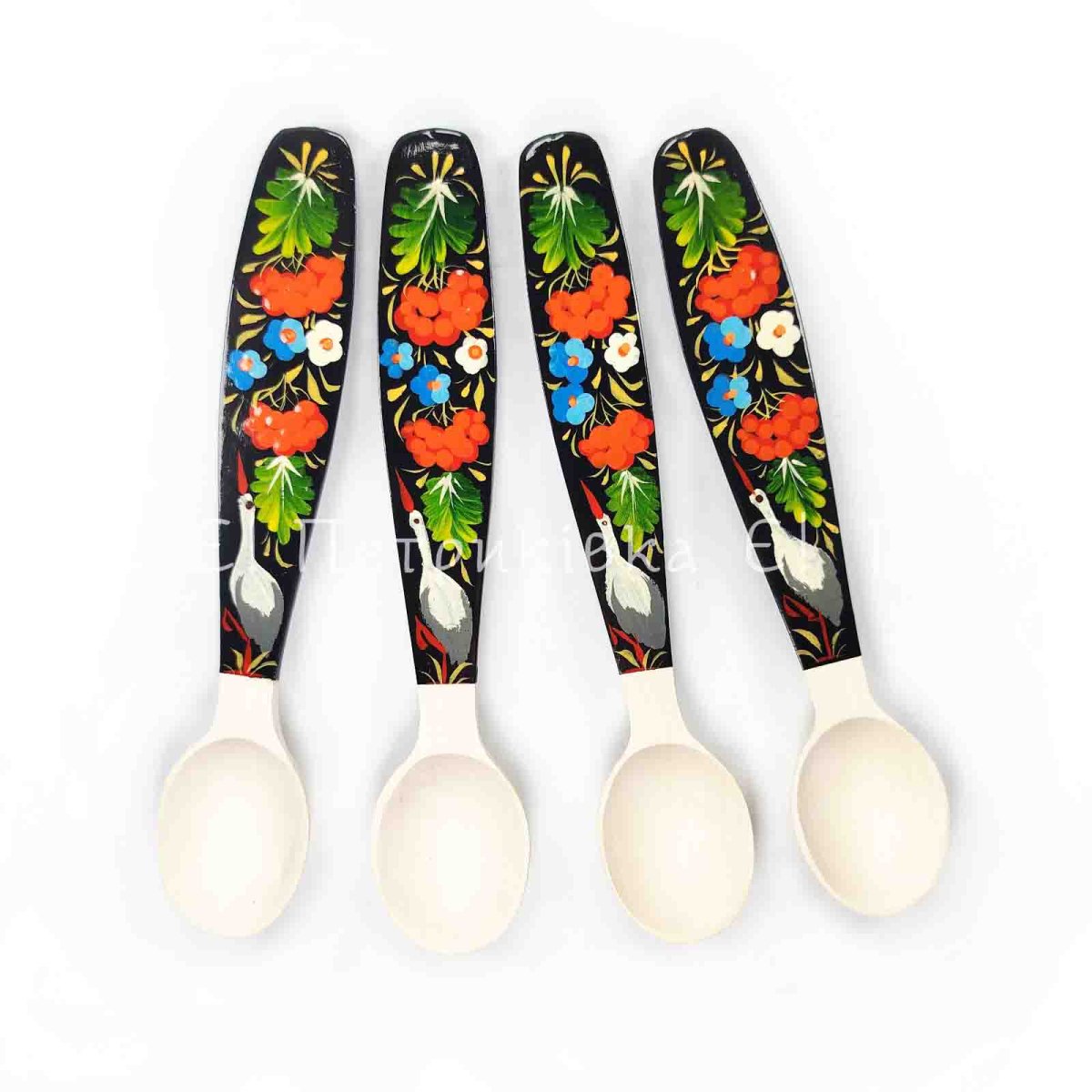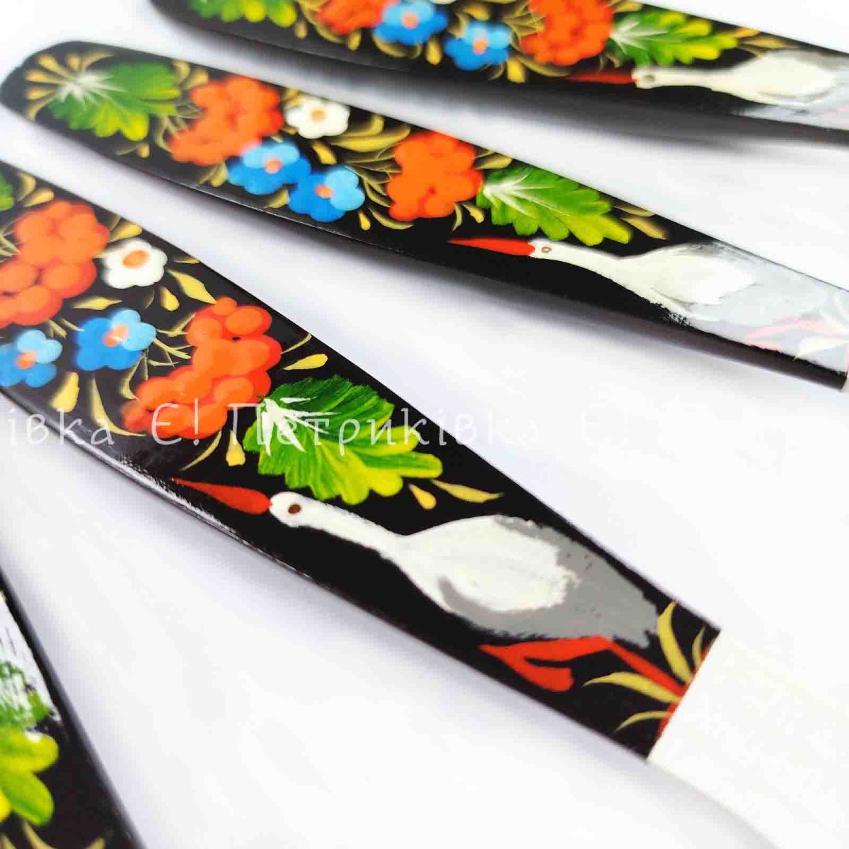 Ложка мала столова (довжина 17 см) з Петриківським розписом "Лелеки у калині"