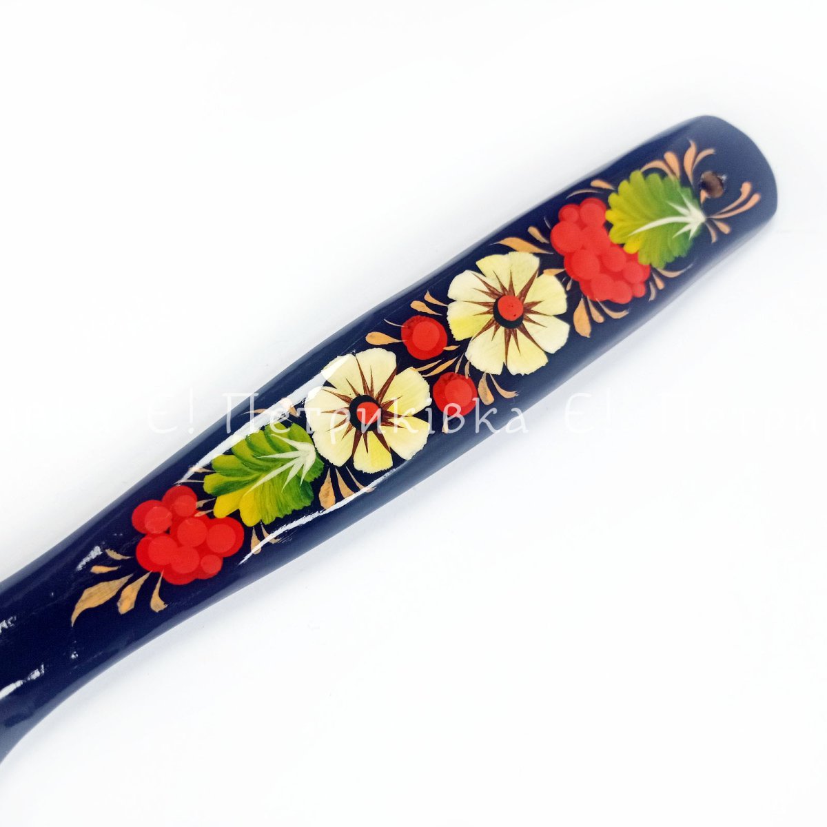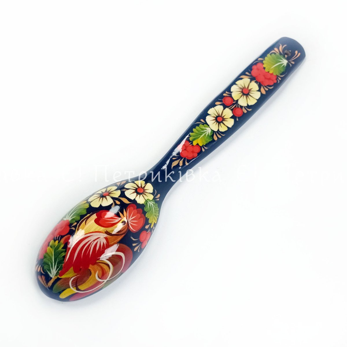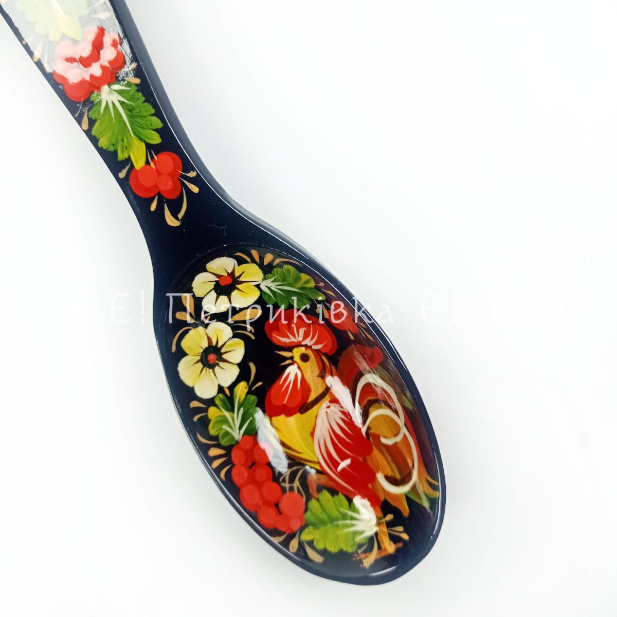 Ложка велика (довжина 26 см) з Петриківським розписом "Півник з білими квітами"