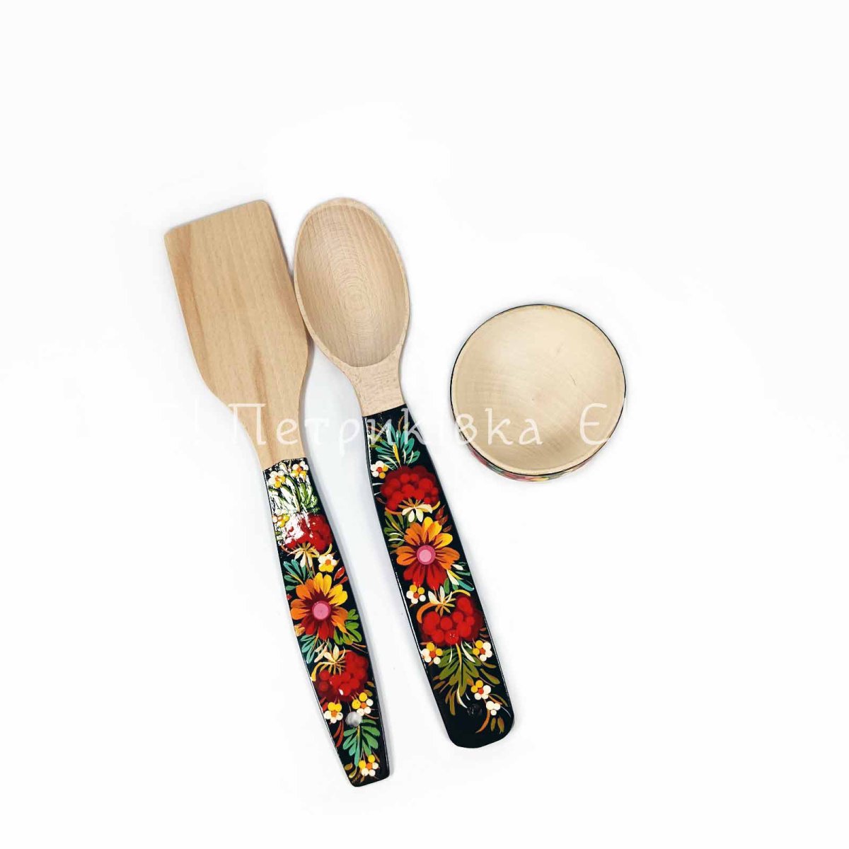 Лопатка (довжина – 28 см), ложка велика столова (довжина – 26 см) та сільничка відкрита (діаметр – 7 см).