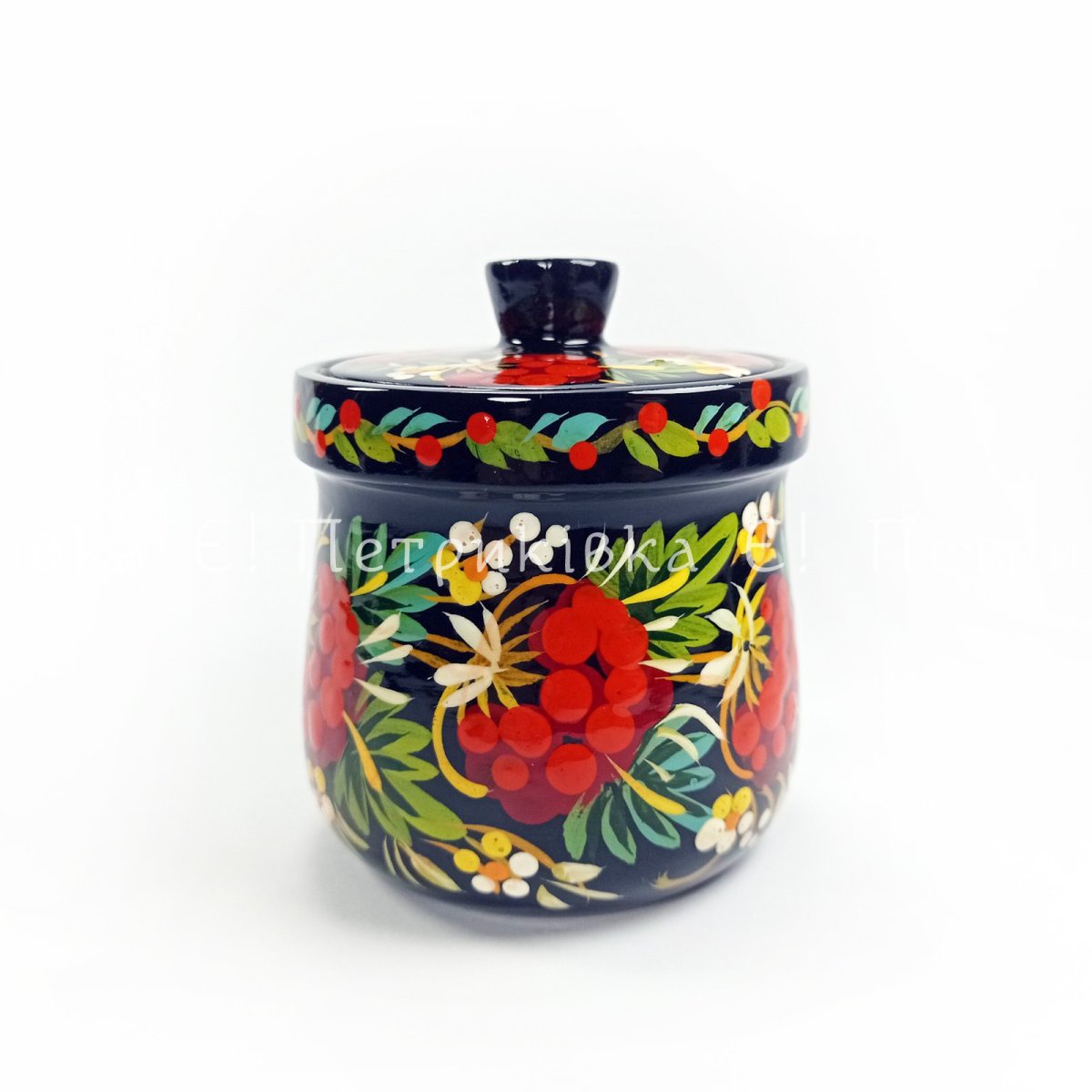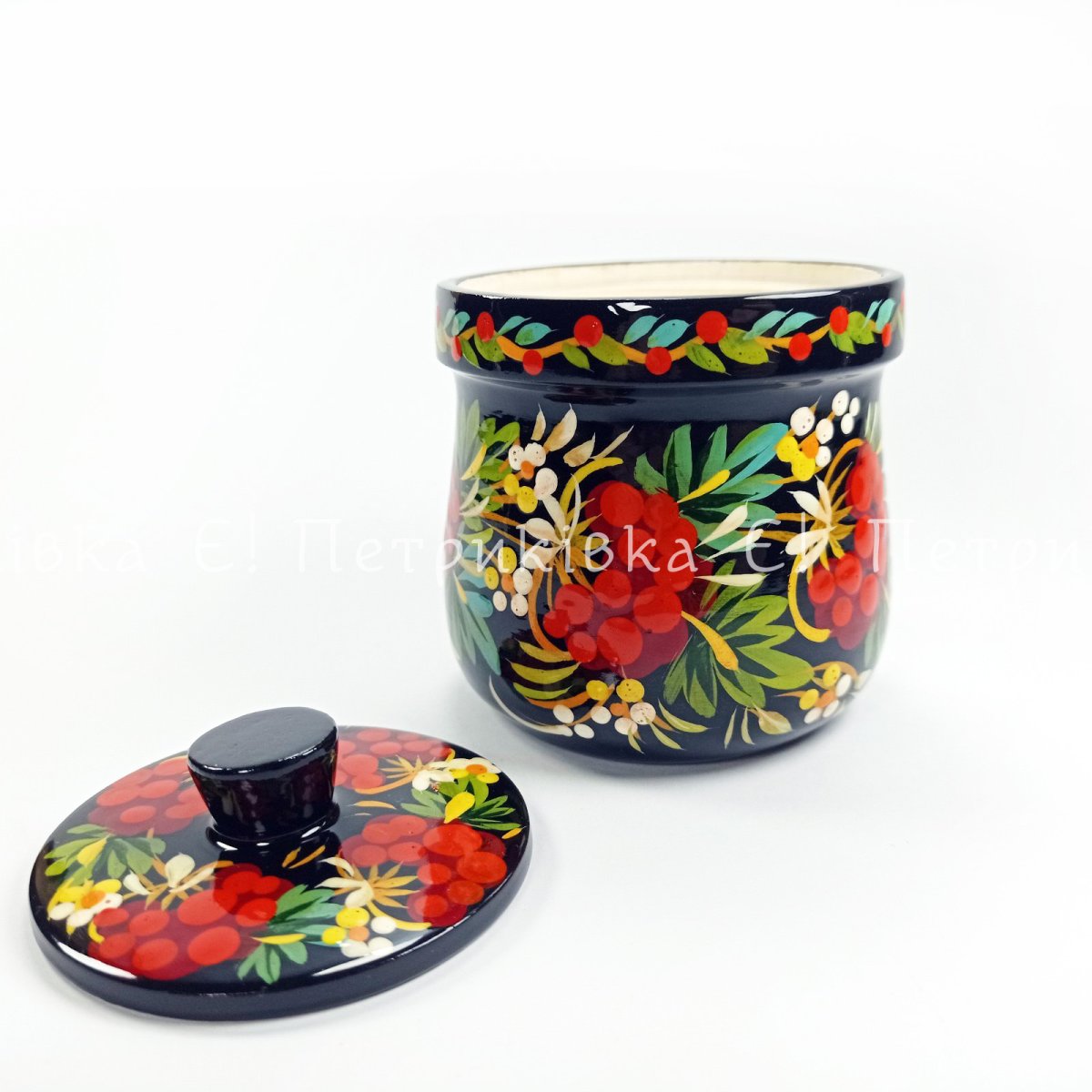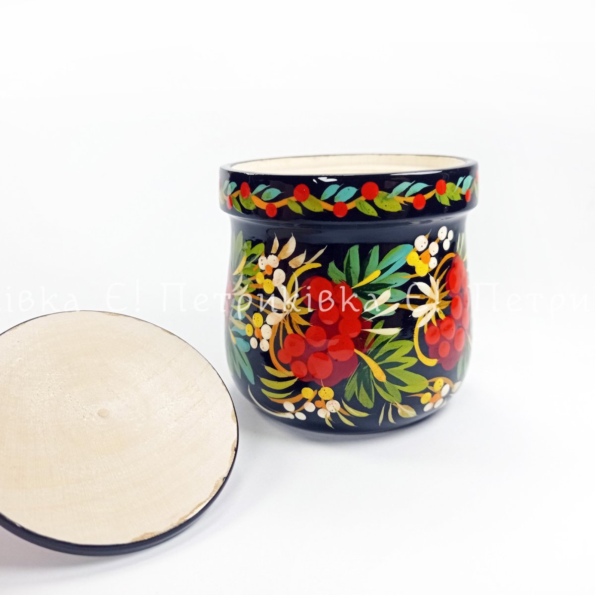 Розміри: діаметр - 6,5 см, висота з кришкою, габаритна - 8,5 см.