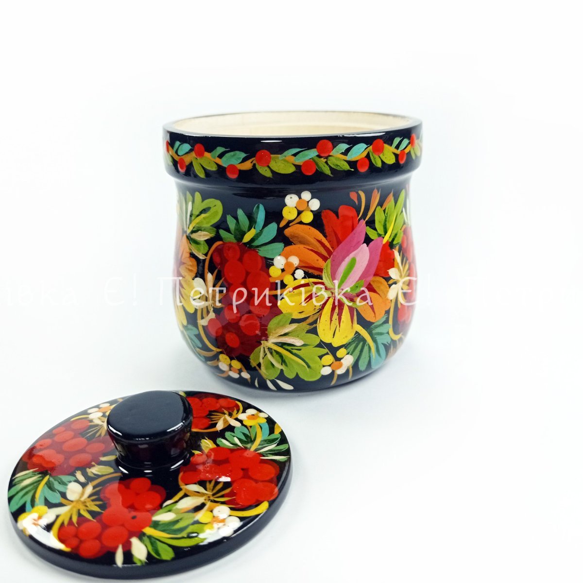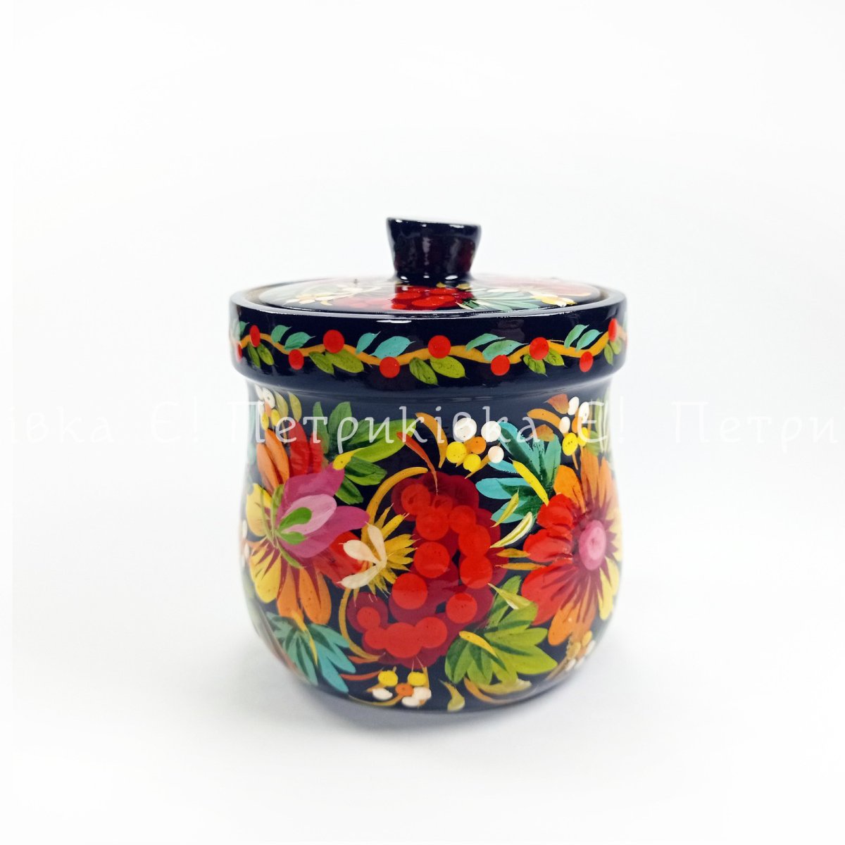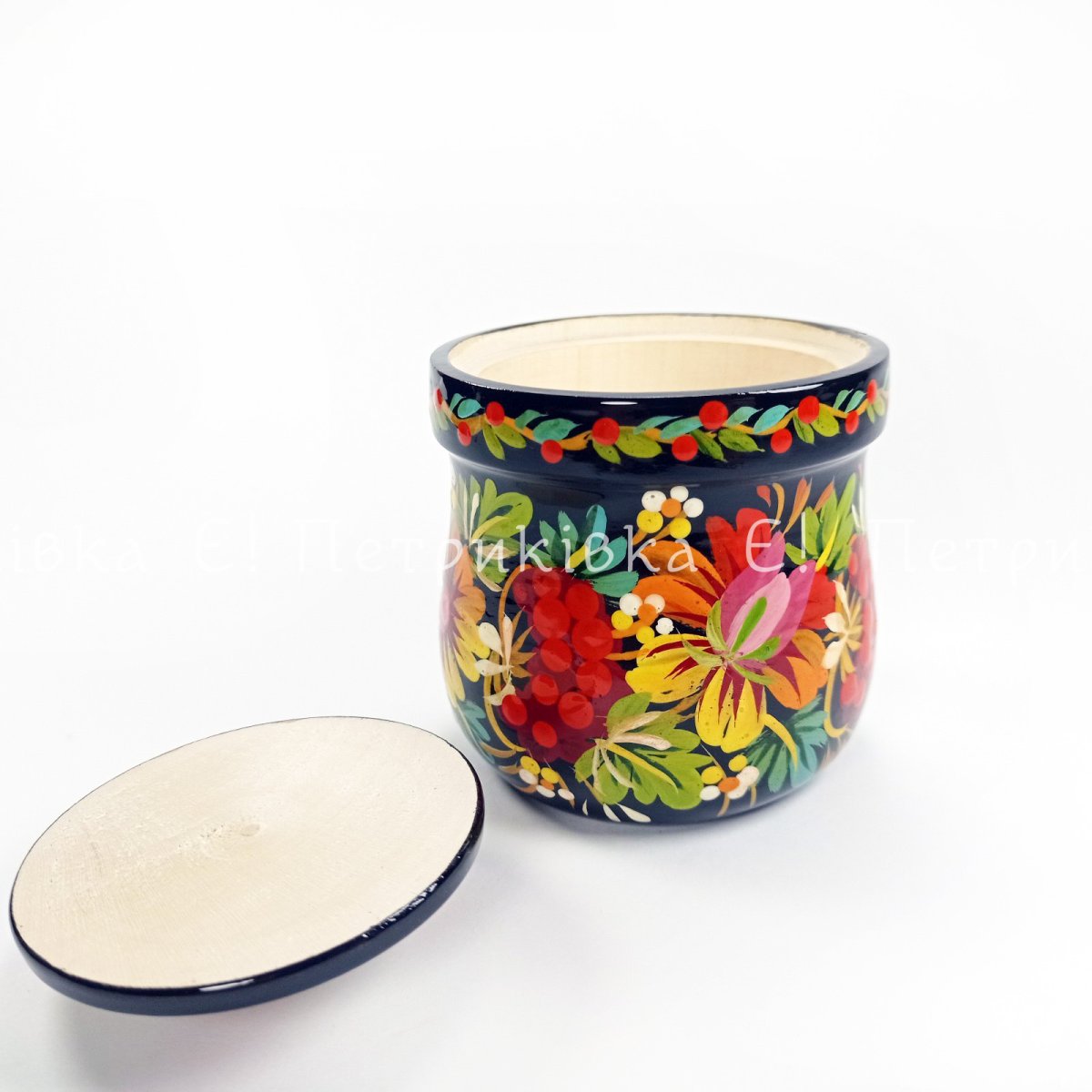 Розміри: діаметр - 6 см, висота з кришкою, габаритна - 6,5 см.