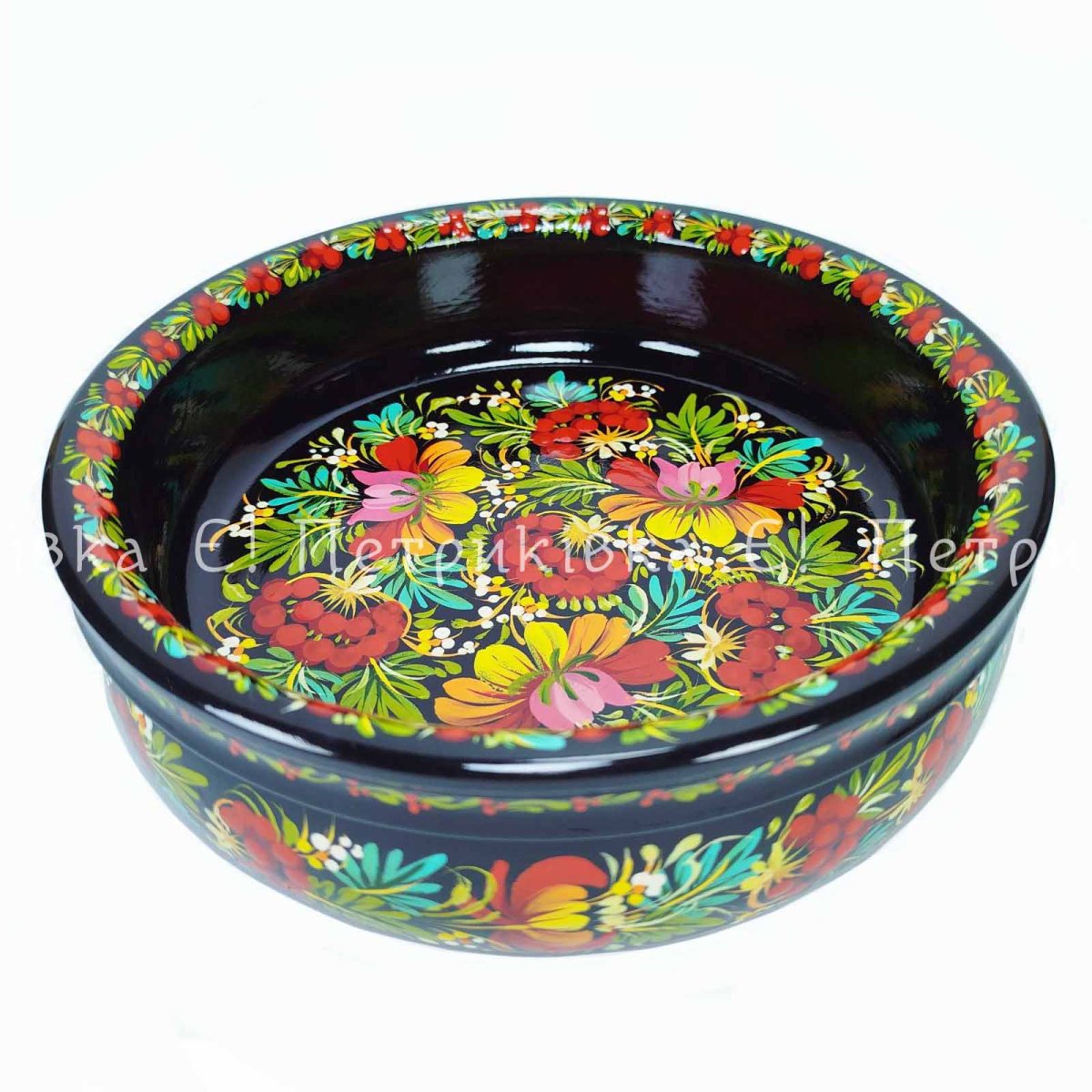 Цукерниця (діаметр 22 см) з Петриківським розписом "Яскрава"