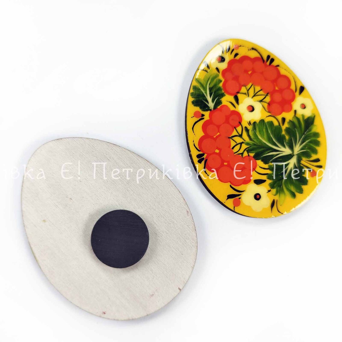 Магніт з Петриківським розписом "Писанка у калині" на жовтому (висота 7 см)