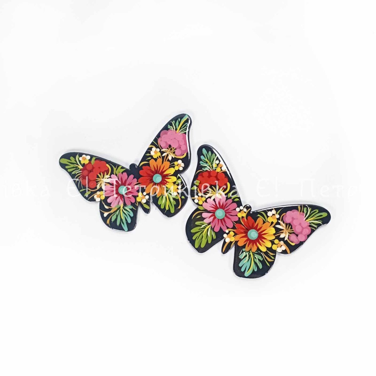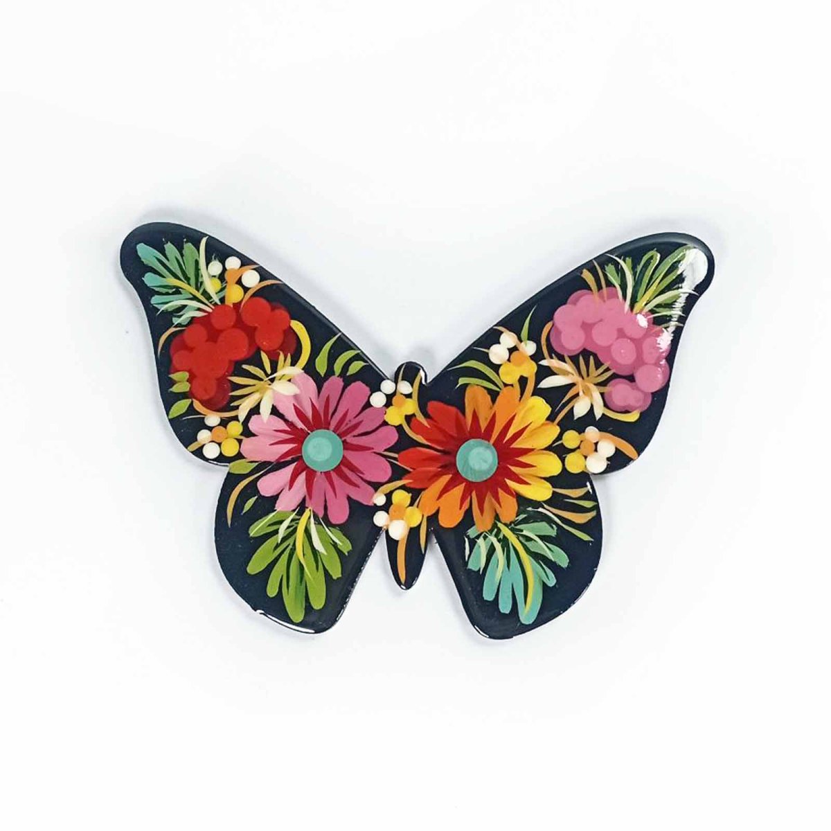 Магніт з Петриківським розписом "Метелик з квітами та калинкою"
