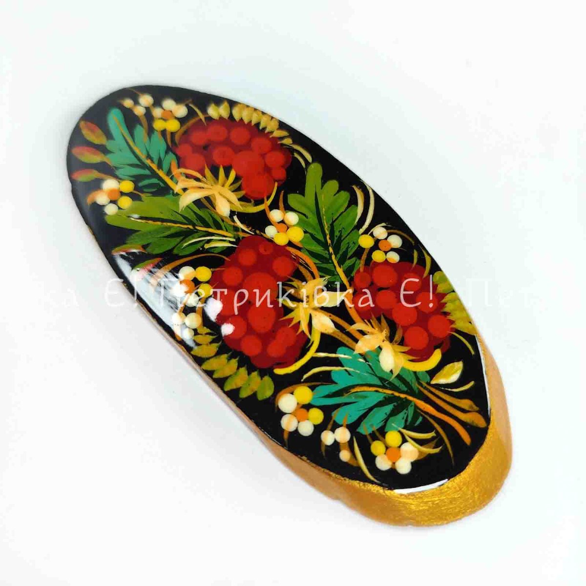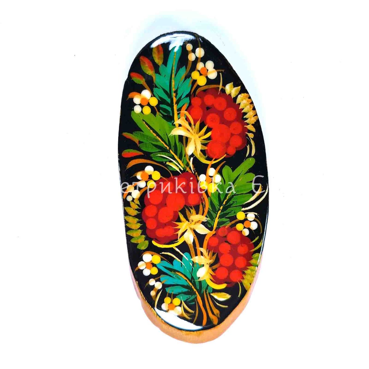 Магніт з Петриківським розписом "Зріз з гілочкою калини"