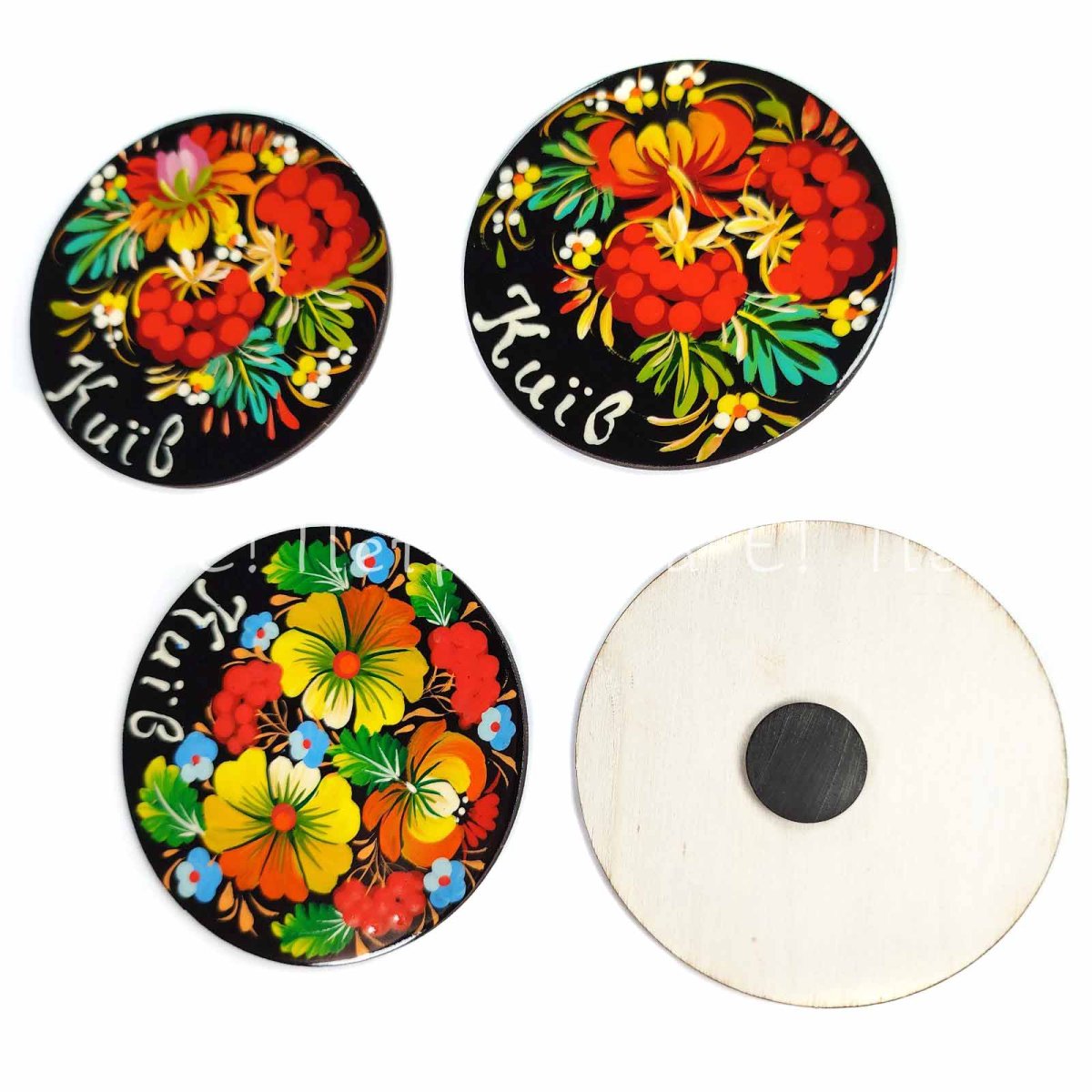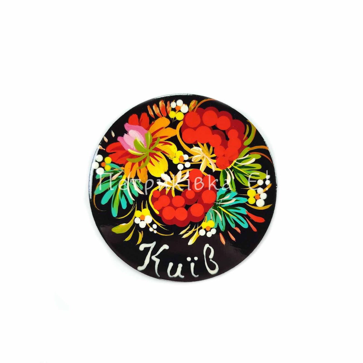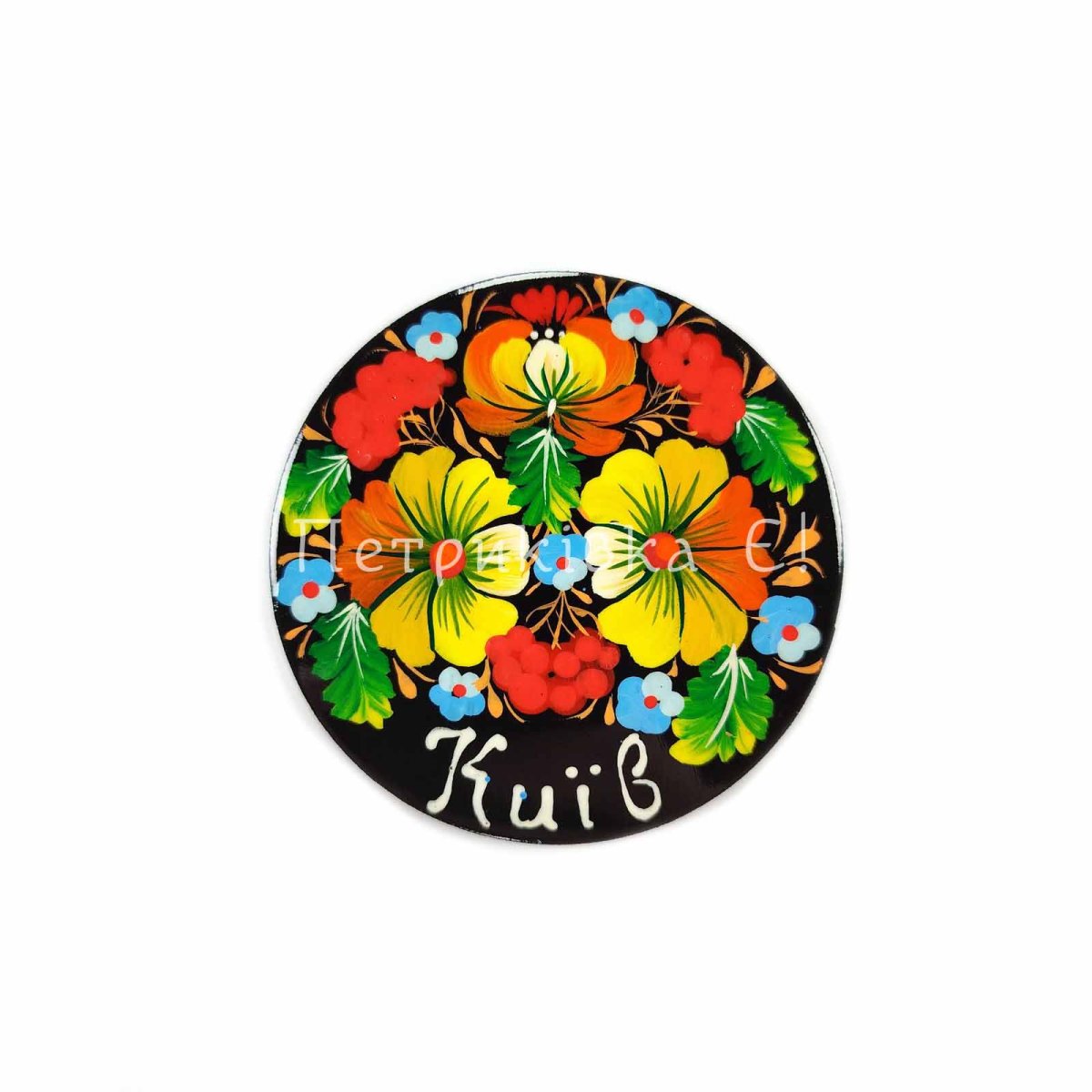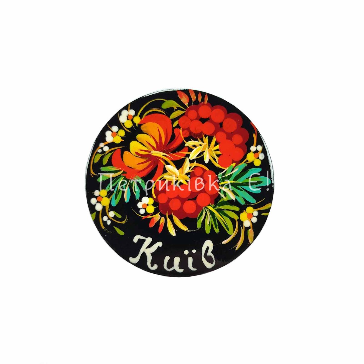 Магніт з Петриківським розписом "Київ" (Ø8 см) в асортименті
