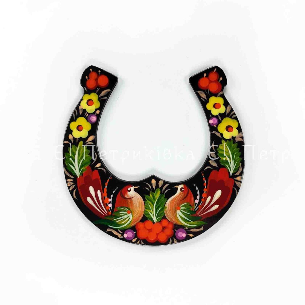 Магніт з Петриківським розписом "Підкова З двома пташками" (9х9 см)