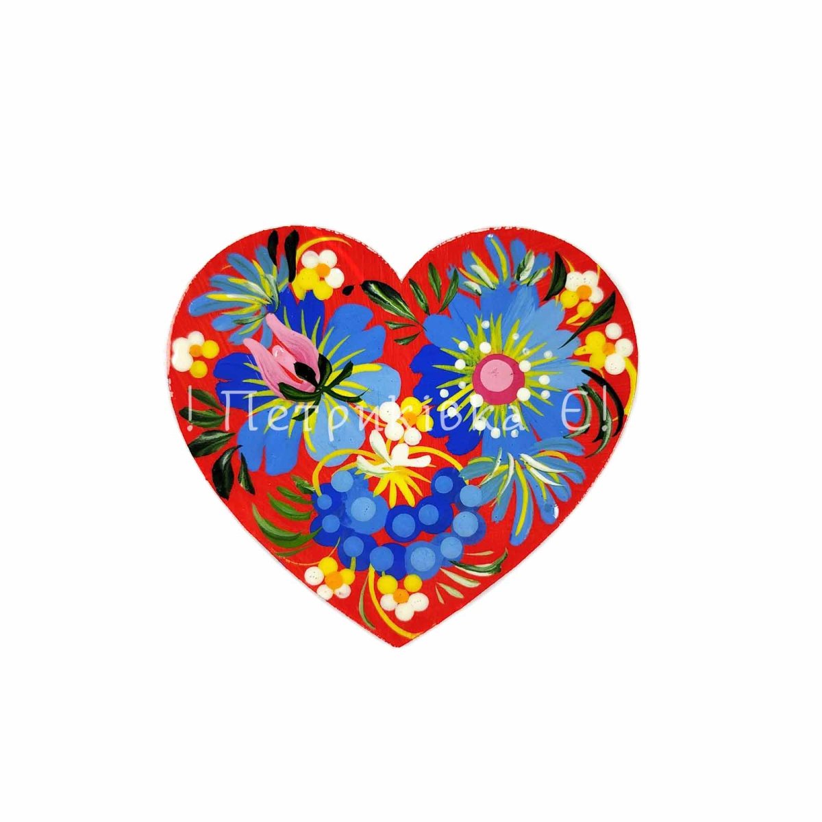 Магніт з Петриківським розписом "Серденько Квіткове" (ширина 8 см)