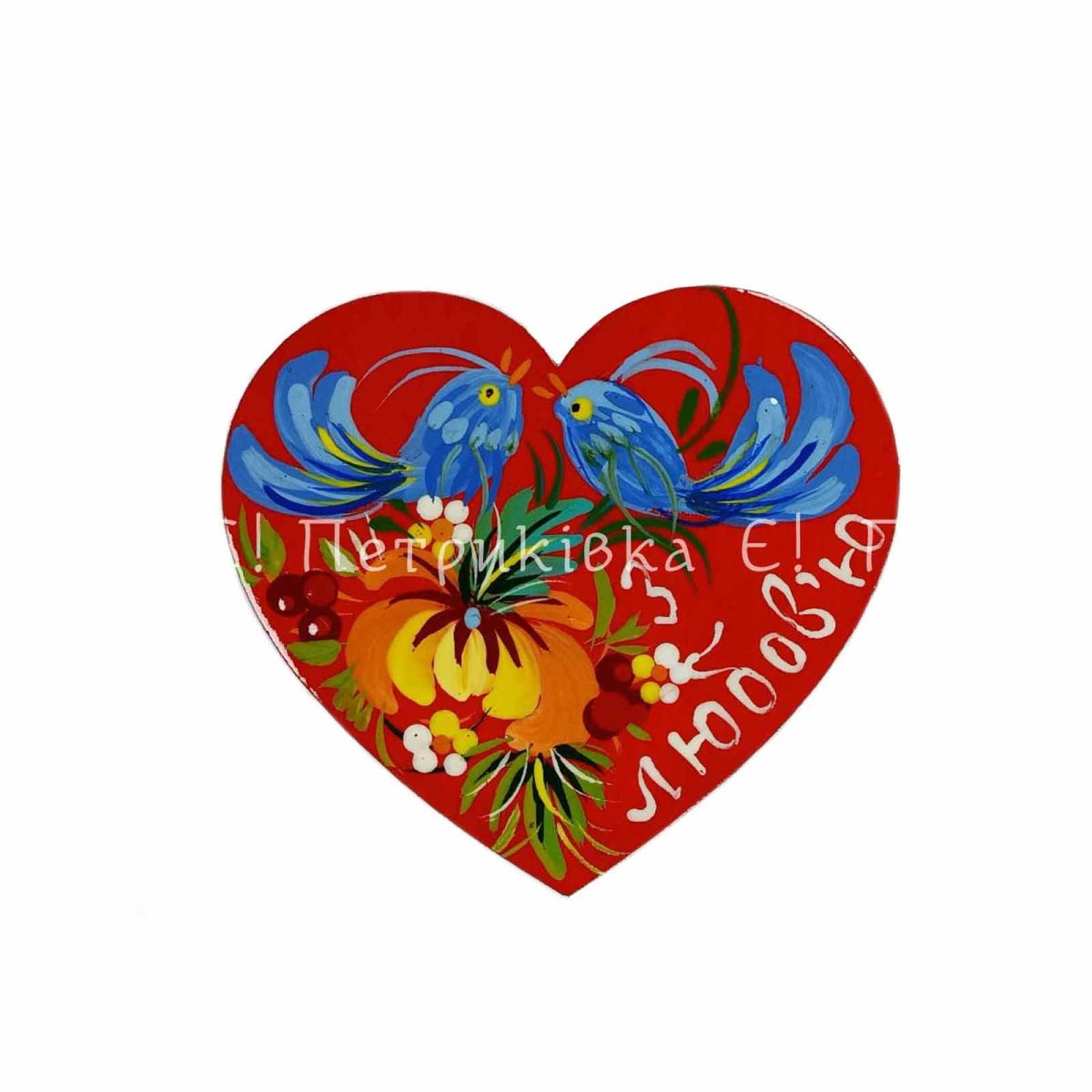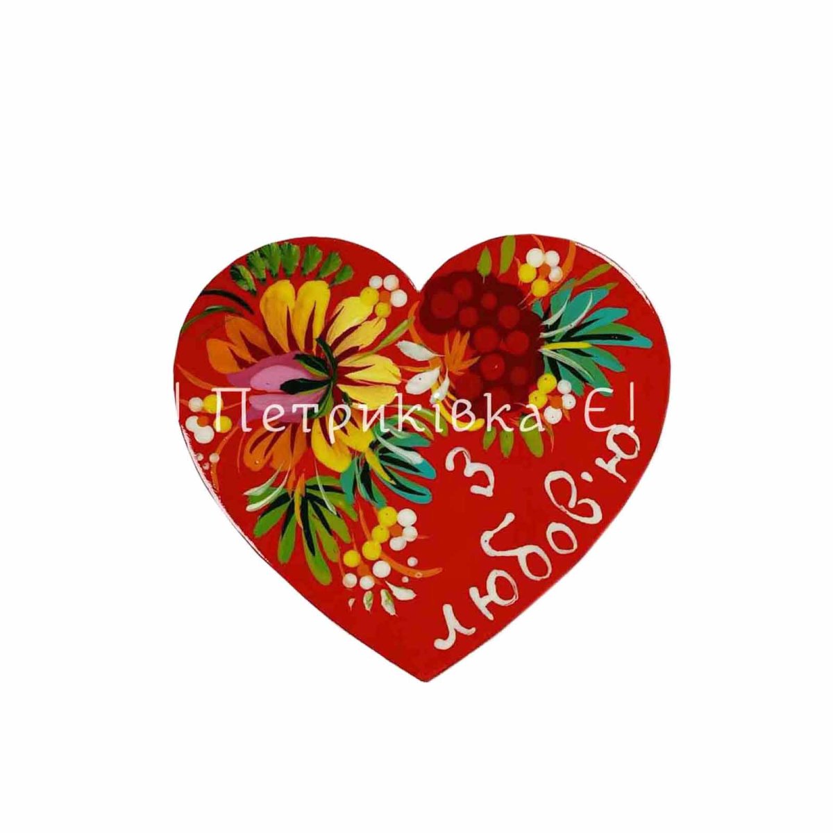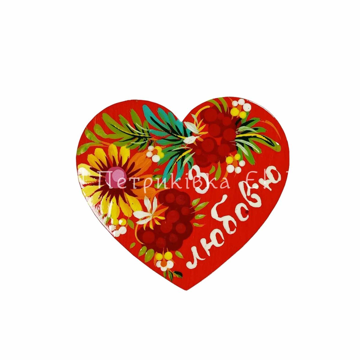 Магніт з Петриківським розписом "Серденько З любов'ю " (ширина 8 см)