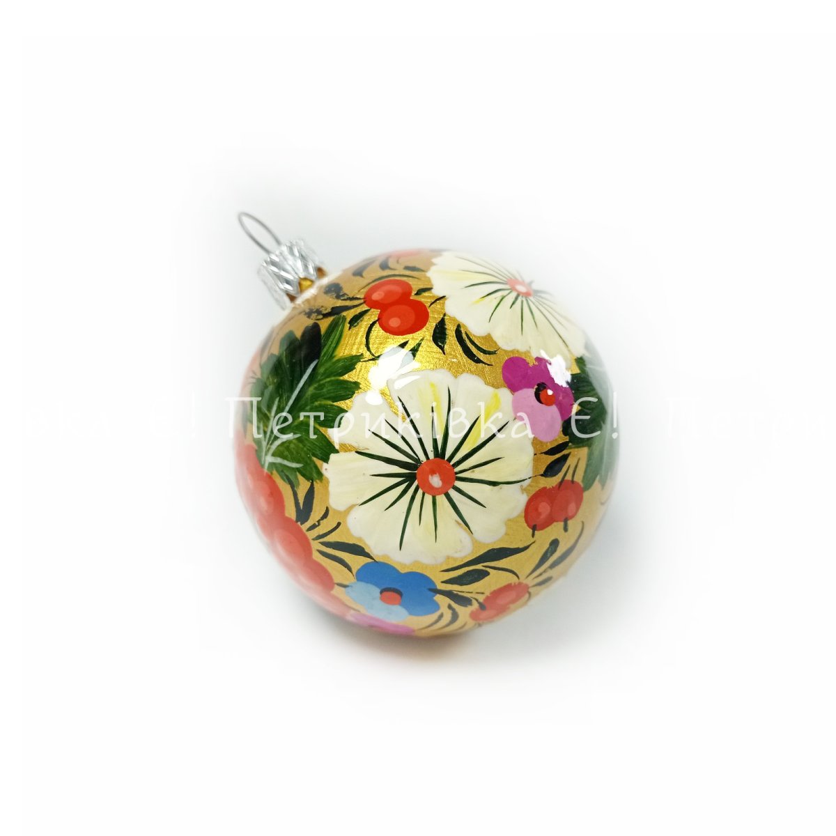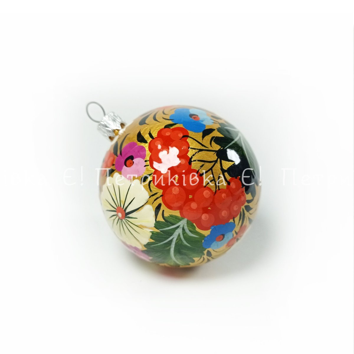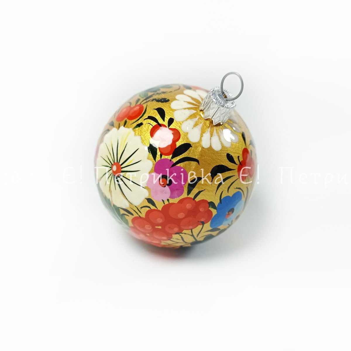 Ялинкова куля з Петриківським розписом "№14 маленький золотий"
