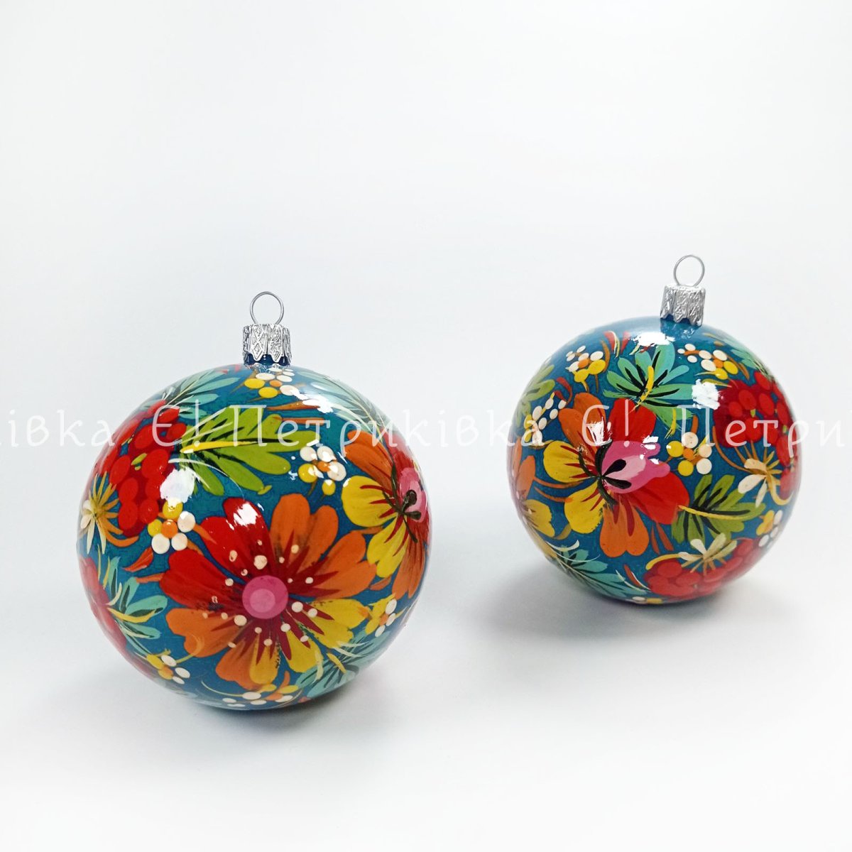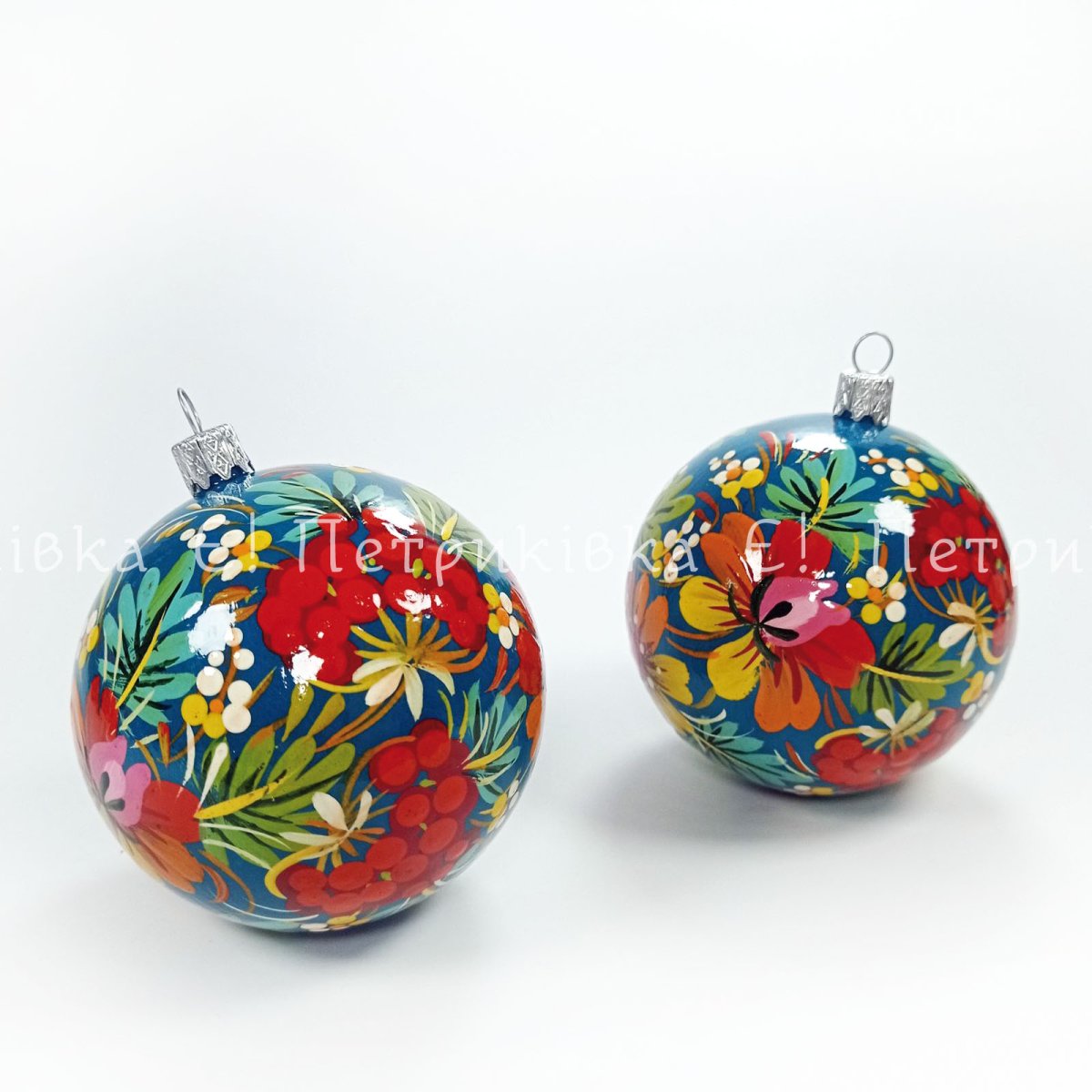 Ялинкова куля з Петриківським розписом "Калина з квітами" діаметр 8 см