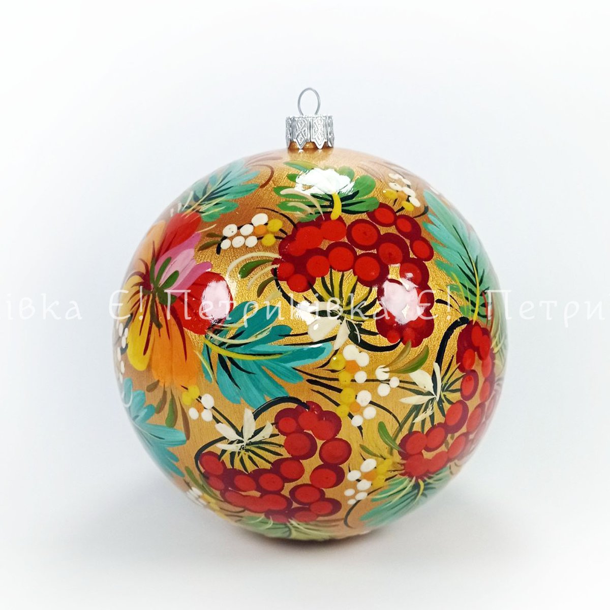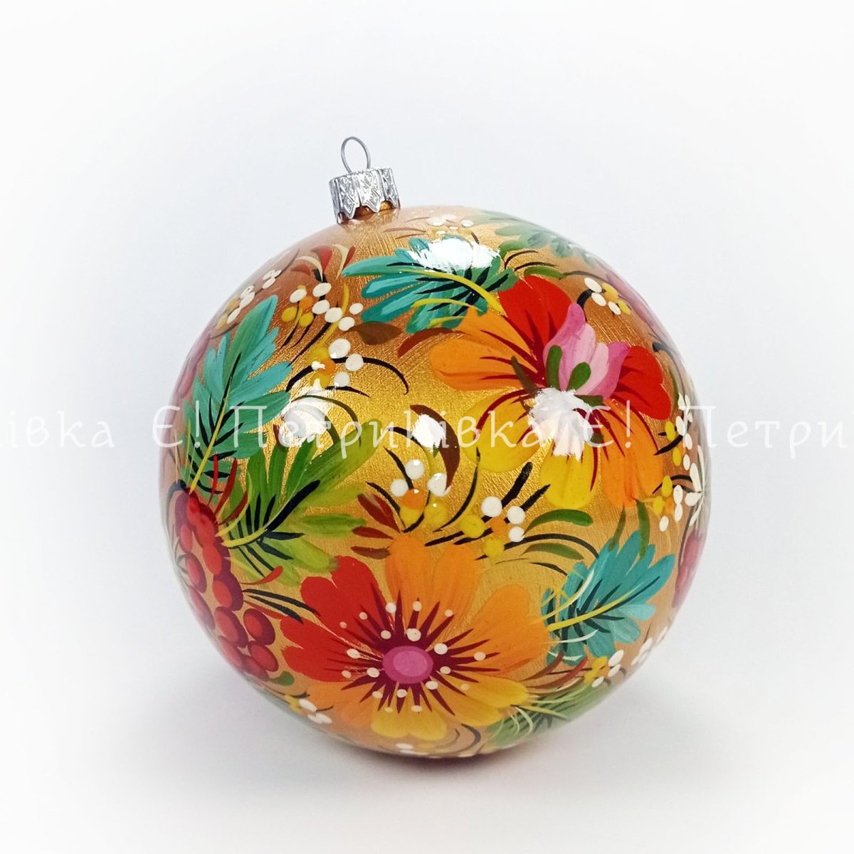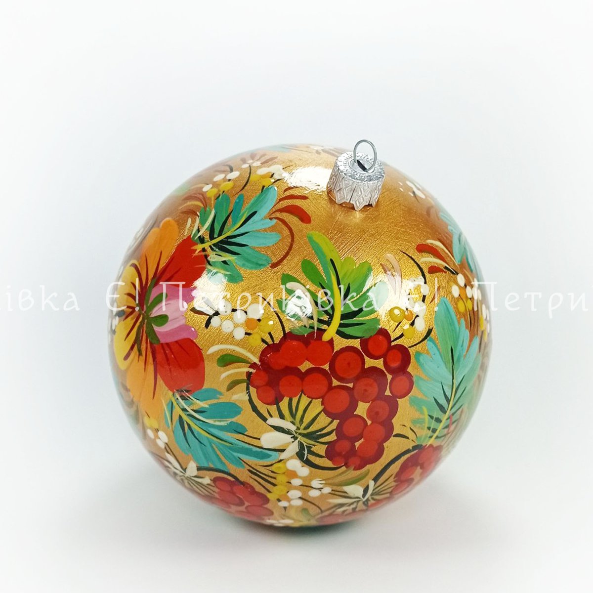 Ялинкова куля з Петриківським розписом "Яскравий" по золоту діаметр 12 см